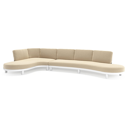 Donato loungehoek in teak en beige verticaal geweven ronde rope met all weather cosytica Althea Camel kussen | Exterioo tuinmeubelen