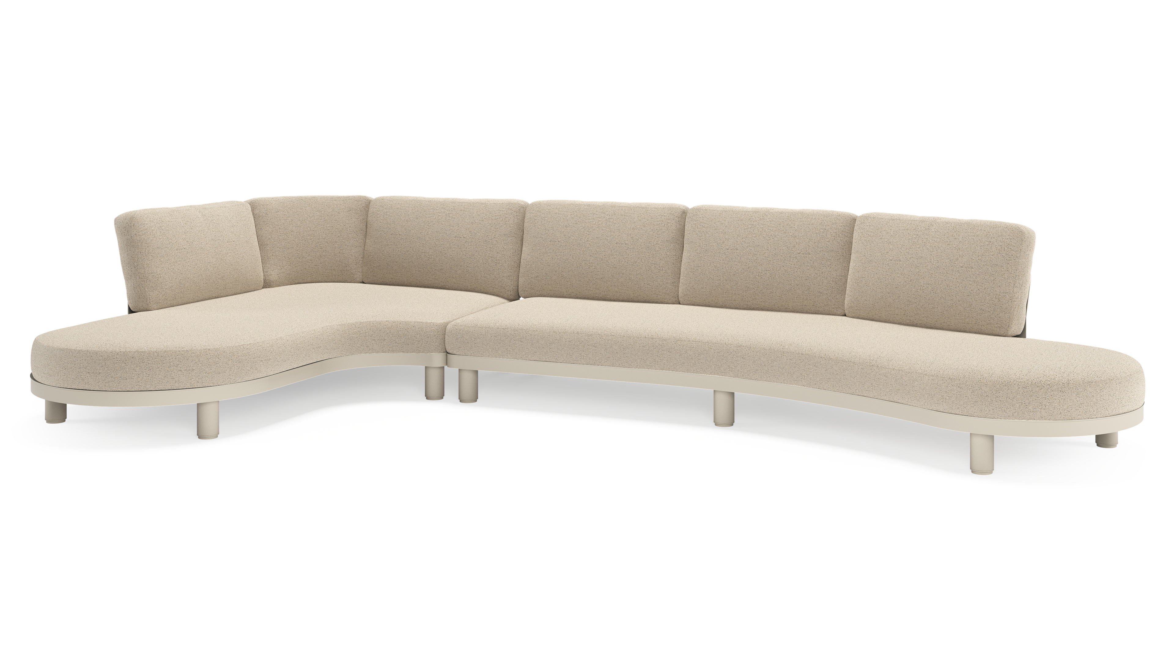 Donato loungehoek in beige aluminium met all weather cosytica Marbella Beige kussen | Exterioo tuinmeubelen