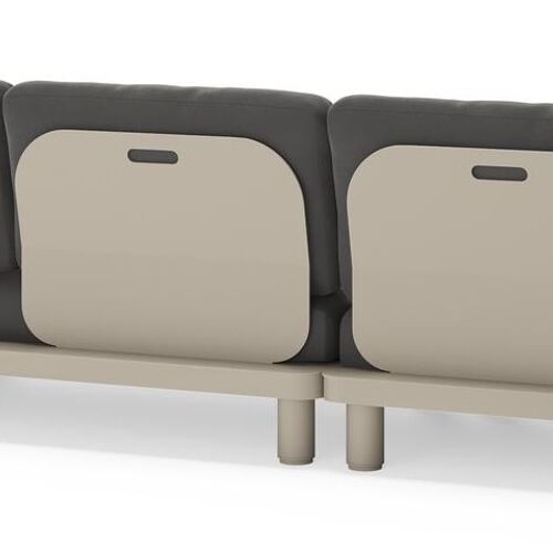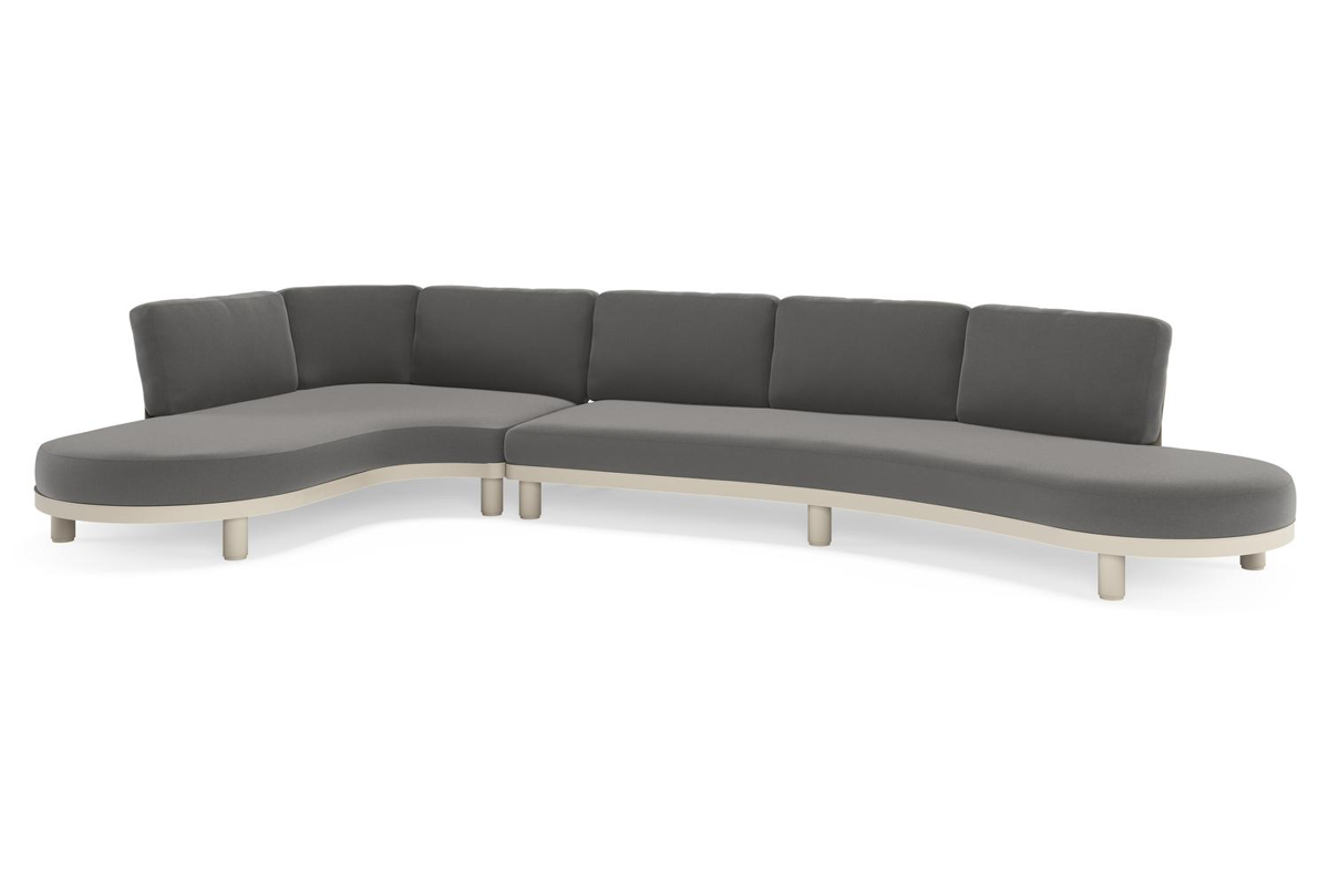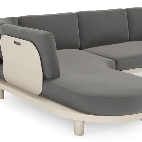 Donato loungehoek in beige aluminium met all weather sunbrella® luxe Natte Charcoal Chine kussen | Exterioo