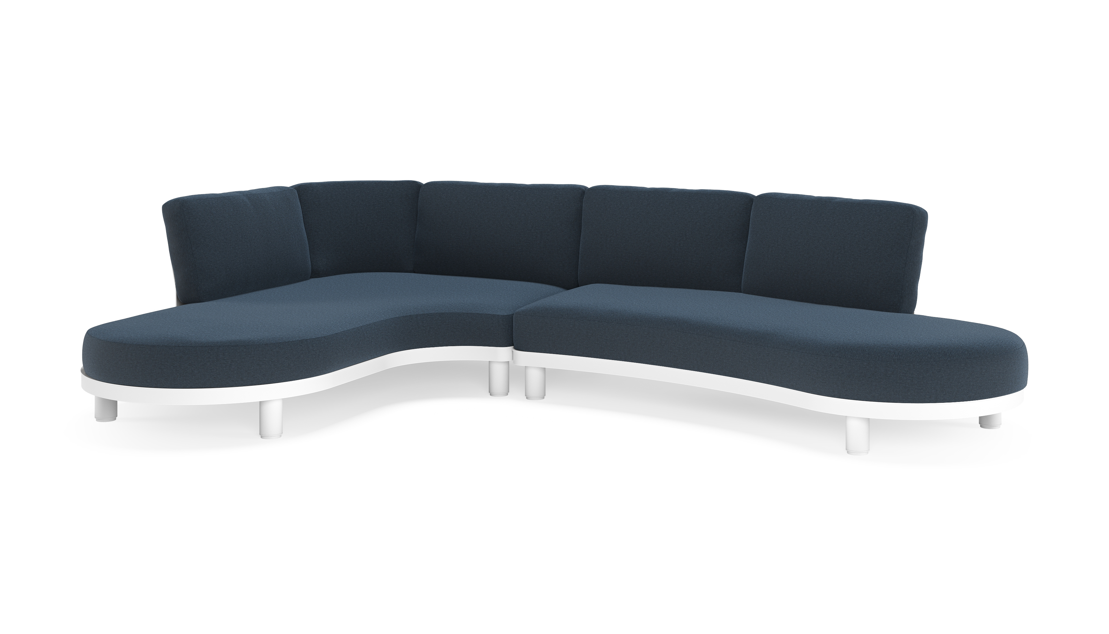 Donato loungehoek in wit aluminium met all weather sunbrella® luxe Heritage Indigo kussen | Exterioo tuinmeubelen