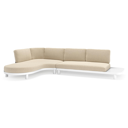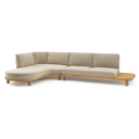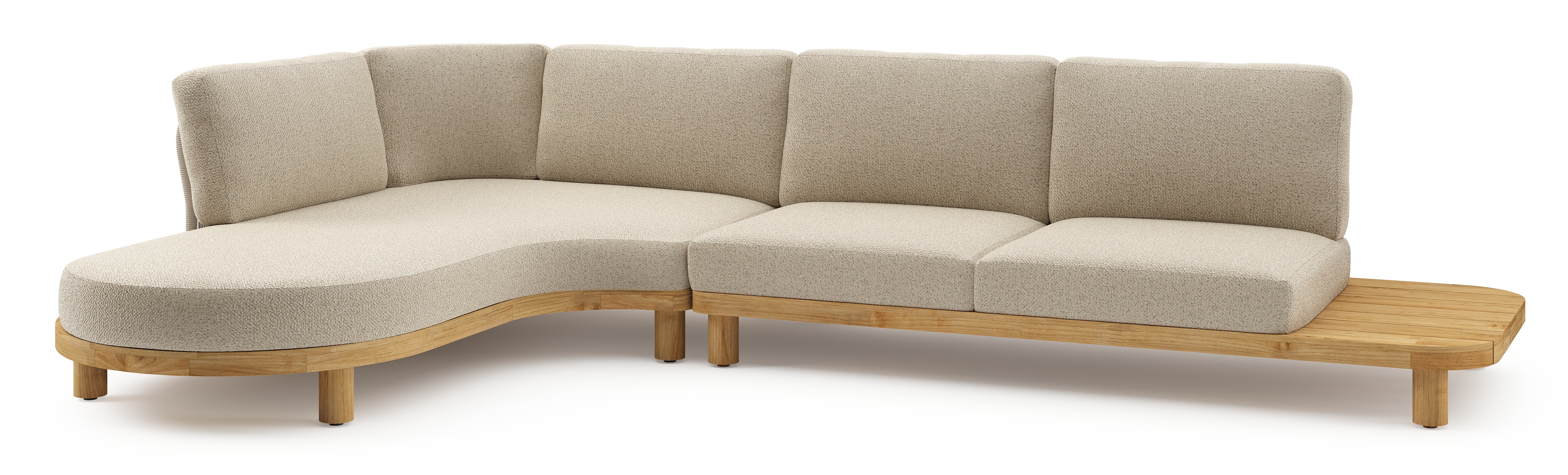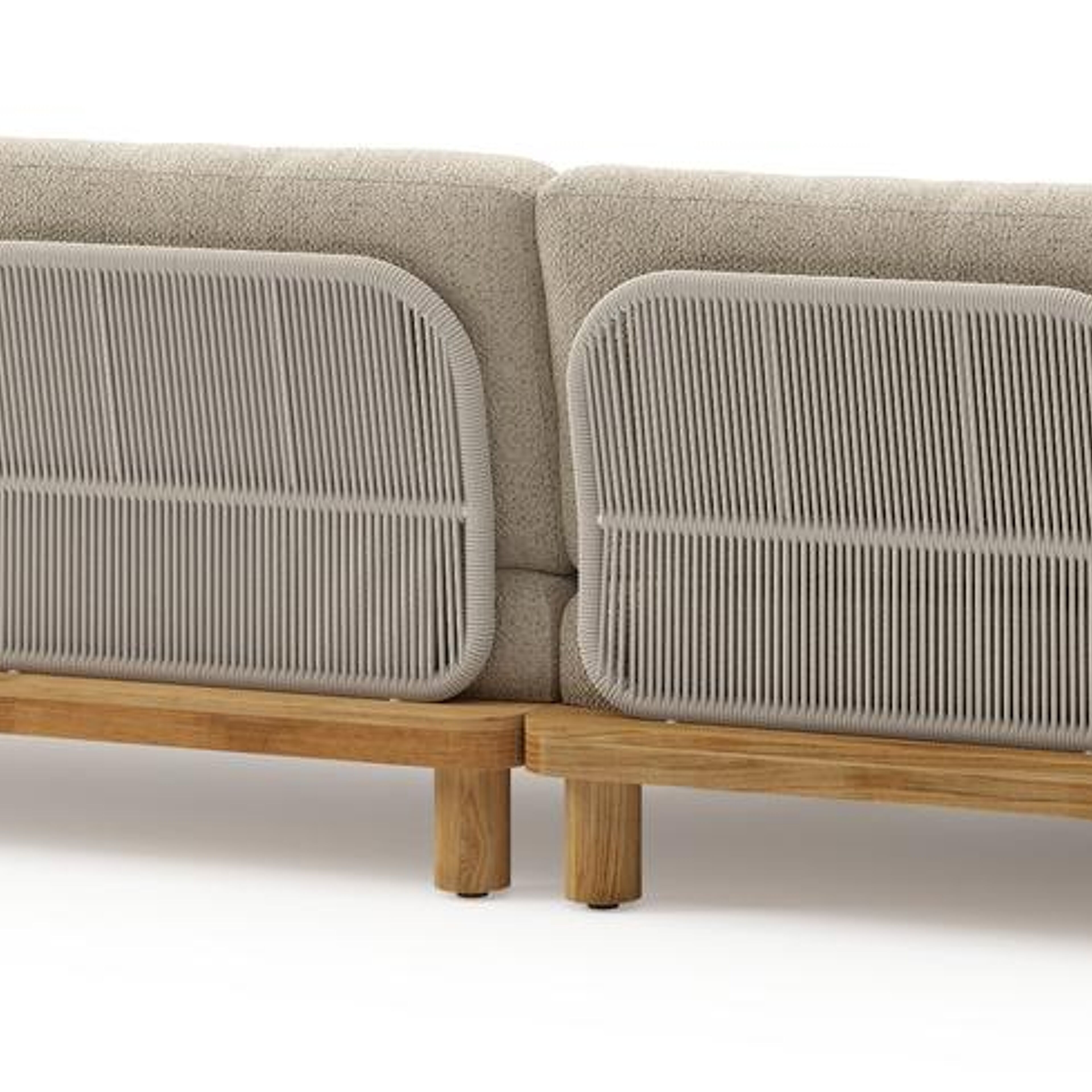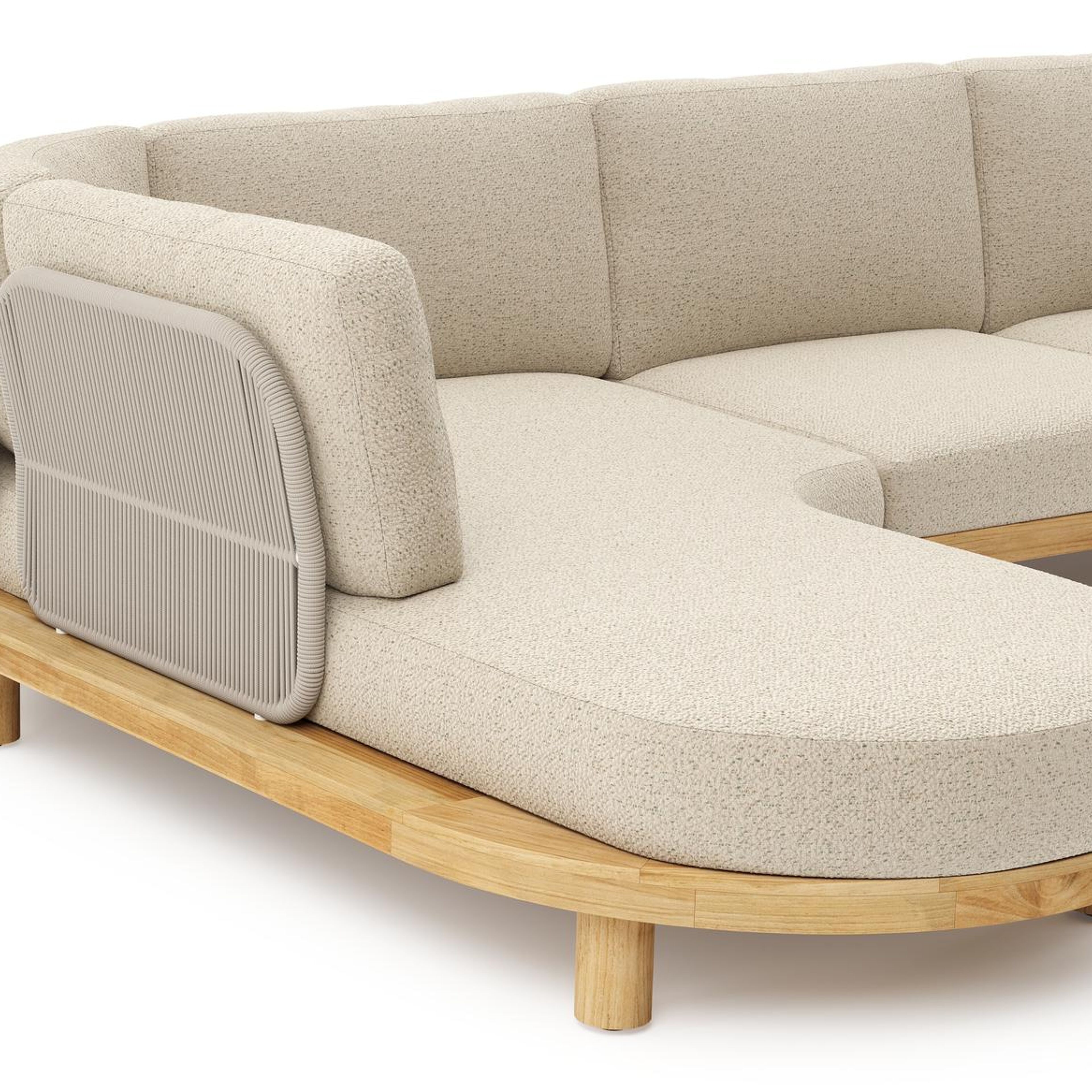 Donato loungehoek in teak en beige verticaal geweven ronde rope met all weather cosytica Bora Forest kussen | Exterioo tuinmeubelen