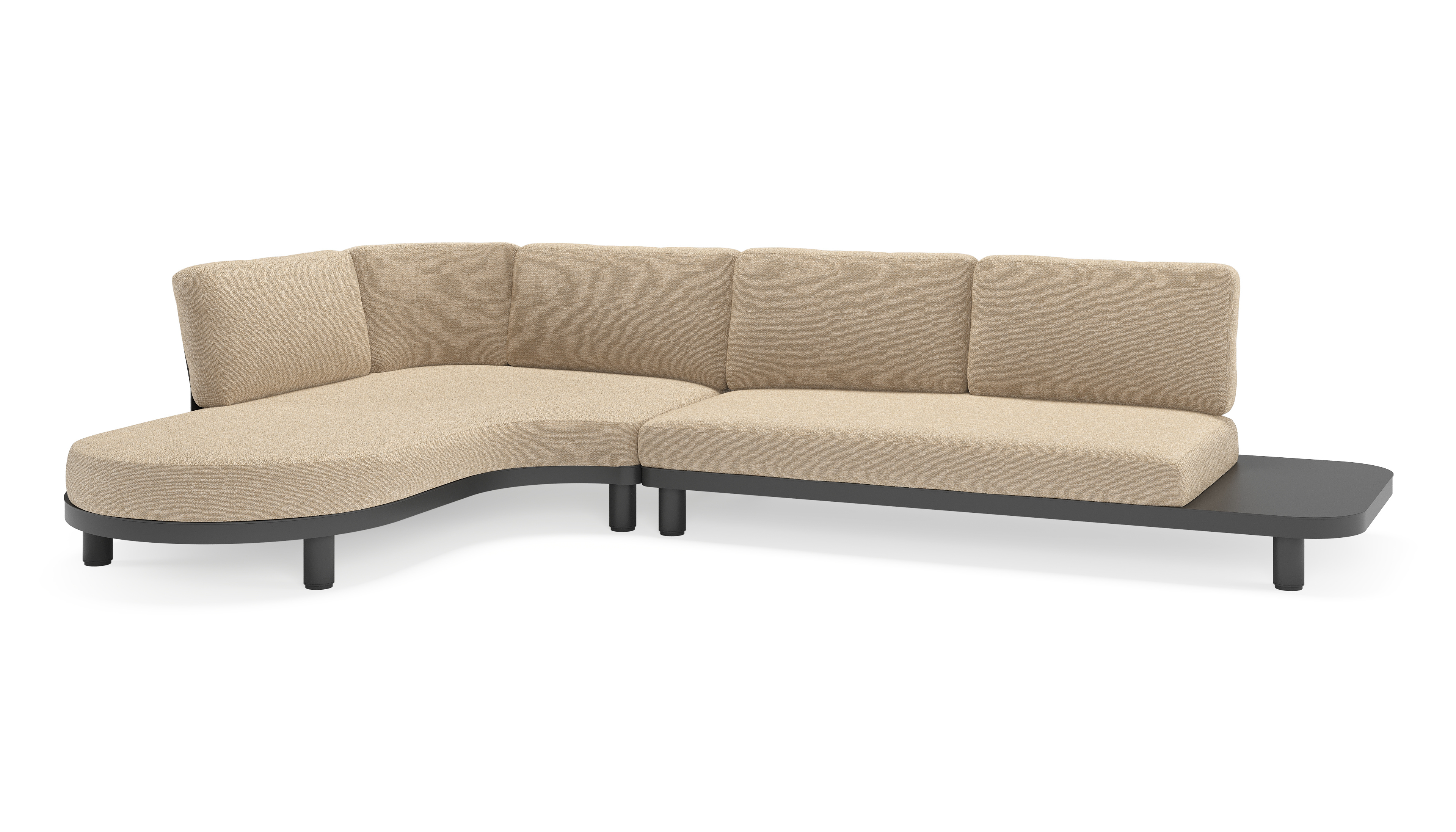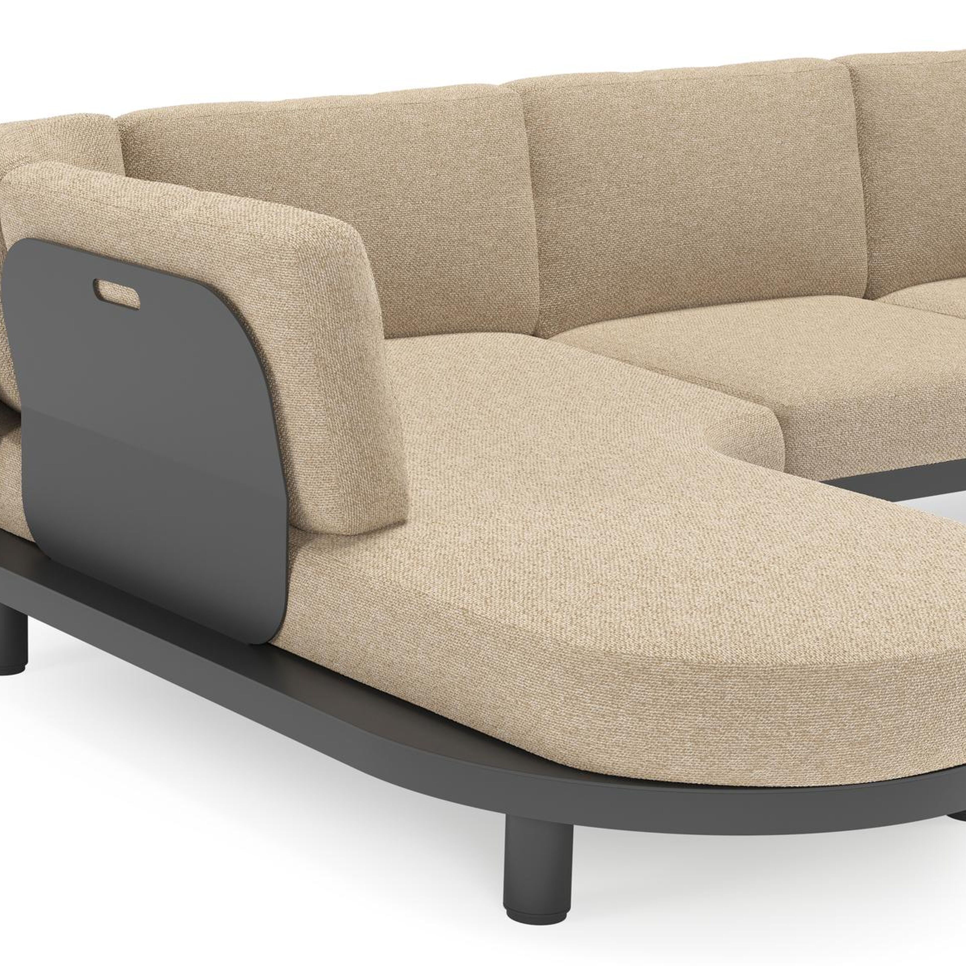 Donato loungehoek in zwart aluminium met all weather cosytica Madagascar Oak kussen | Exterioo tuinmeubelen