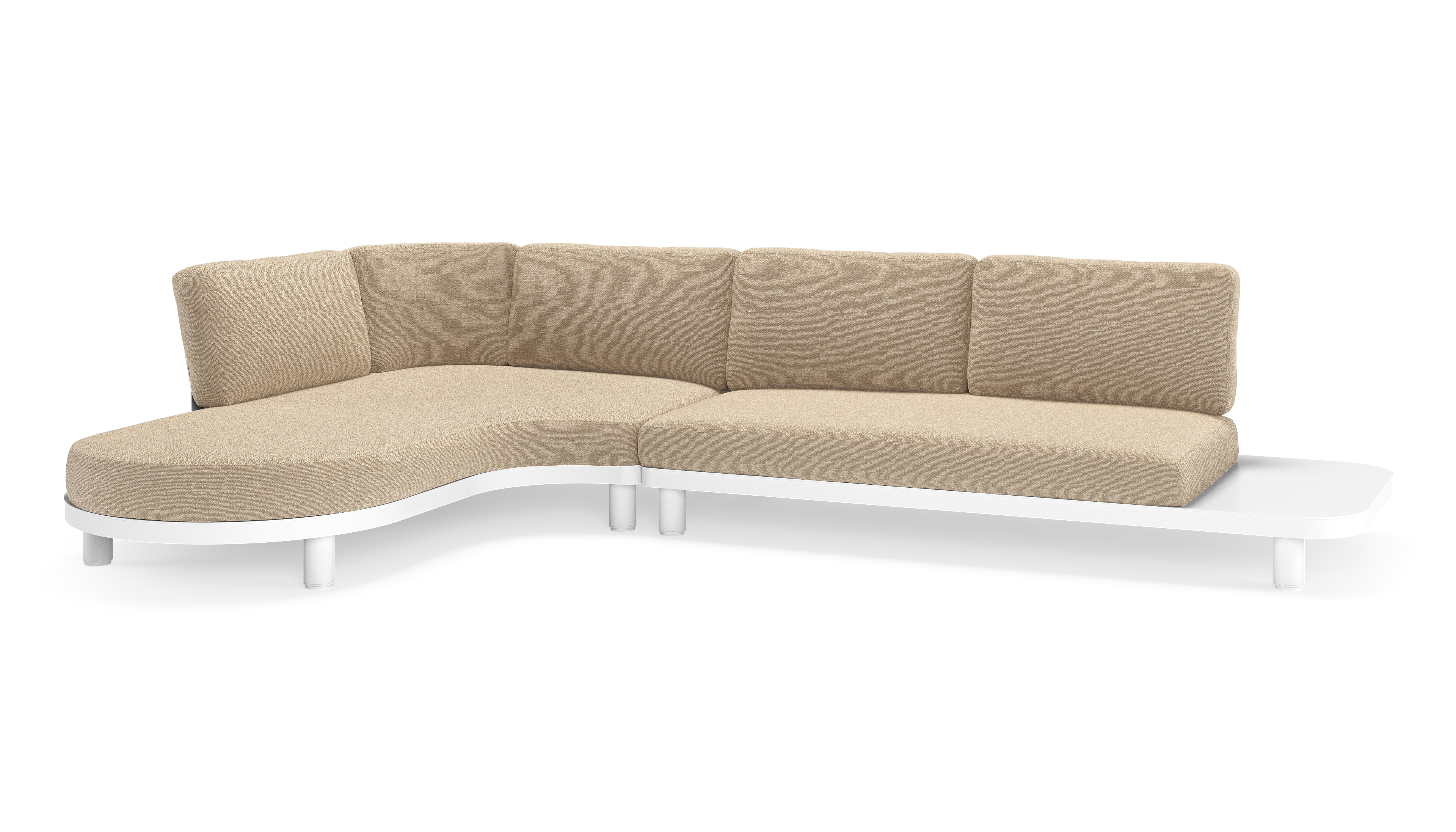 Donato loungehoek in wit aluminium met all weather cosytica Madagascar Oak kussen | Exterioo tuinmeubelen