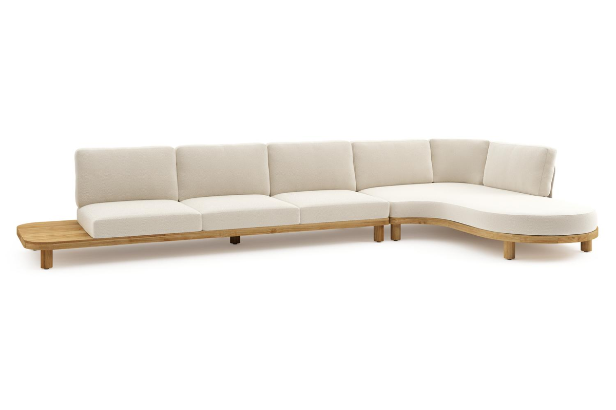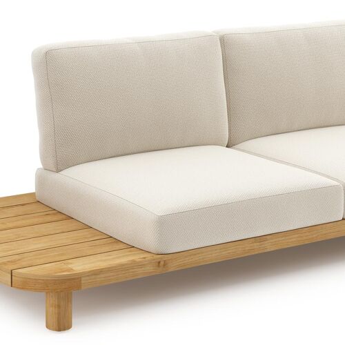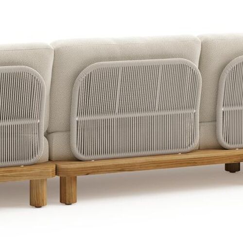 Donato loungehoek in teak en beige verticaal geweven ronde rope met all weather cosytica Althea Off White kussen | Exterioo