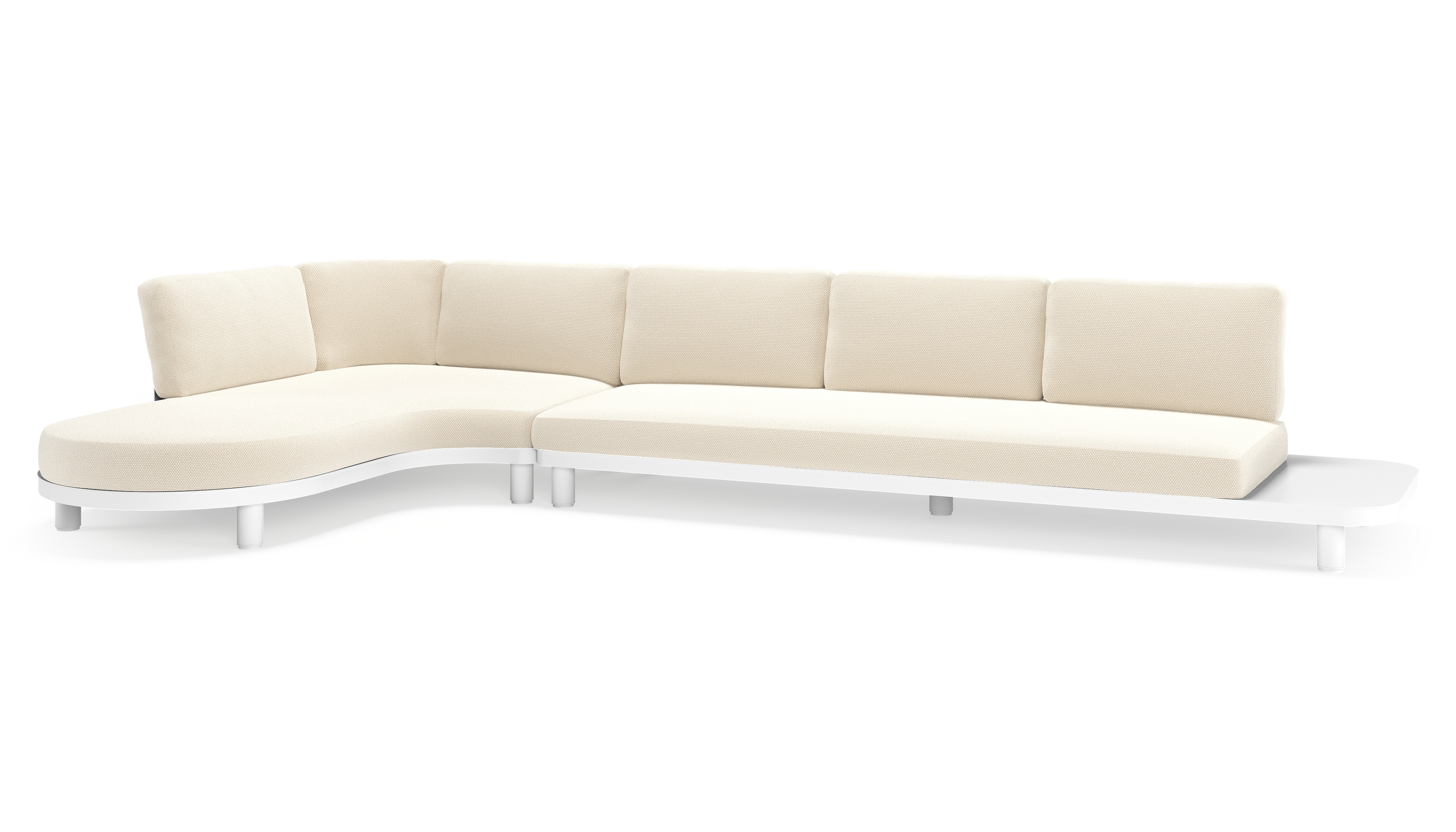 Donato loungehoek in wit aluminium met all weather cosytica Althea Off White kussen | Exterioo tuinmeubelen