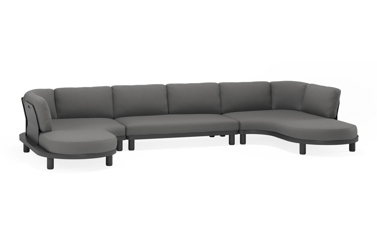 Donato loungehoek in zwart aluminium en met savane zinc all weather sunbrella® luxe kussens | Exterioo