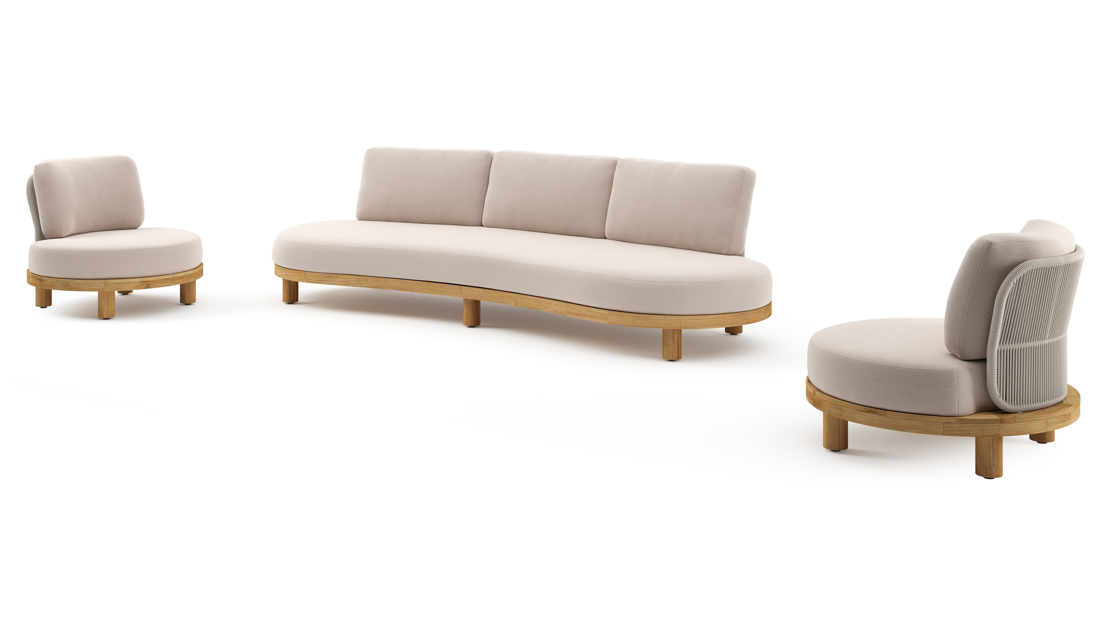 Donato omarmt de natuur met vloeiende vormen, warm teak en stijlvol aluminium in wit, zwart of beige. Een ontwerp dat rust uitstraalt, karakter toevoegt en natuurlijke elegantie naar je tuin brengt.