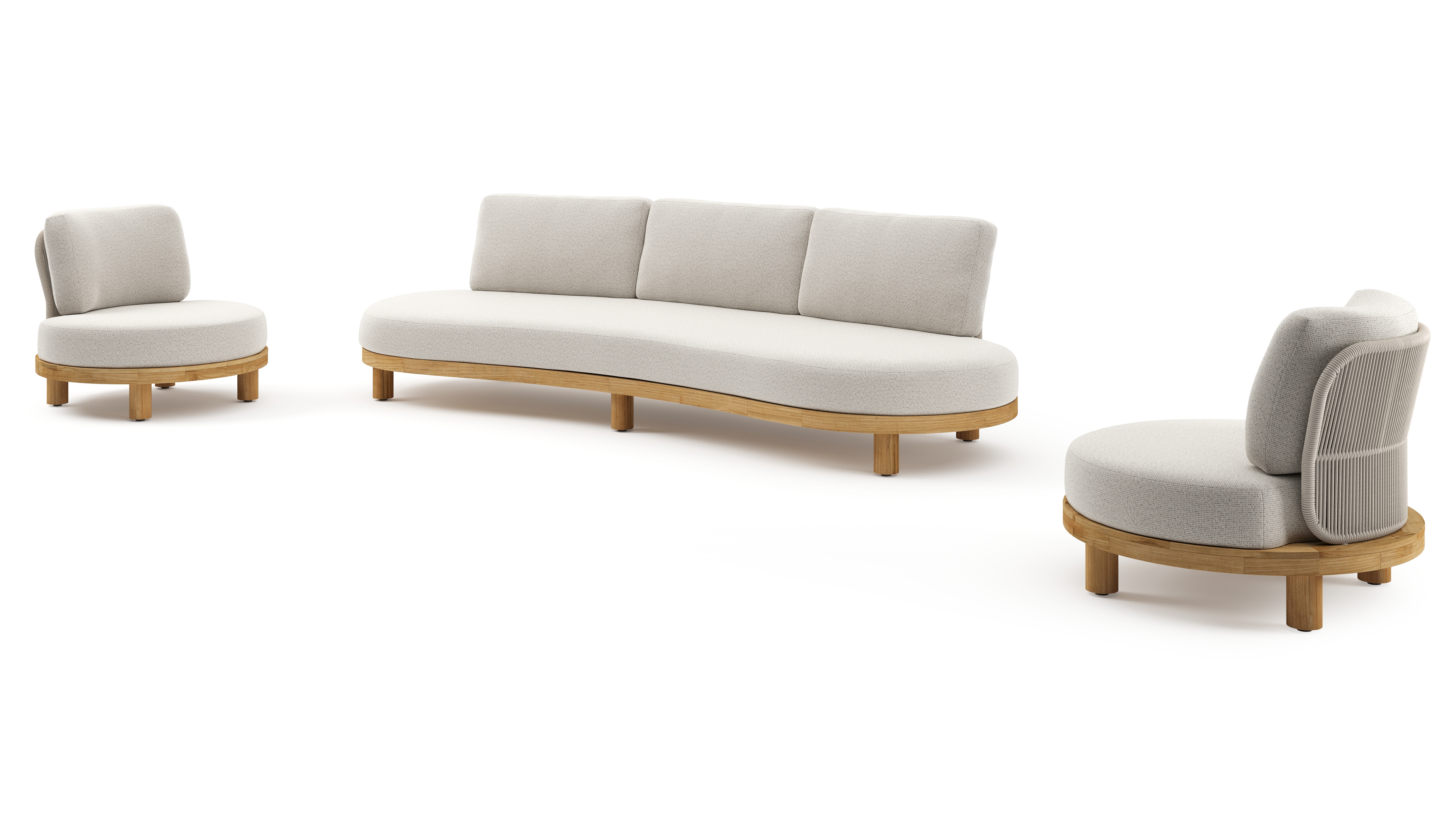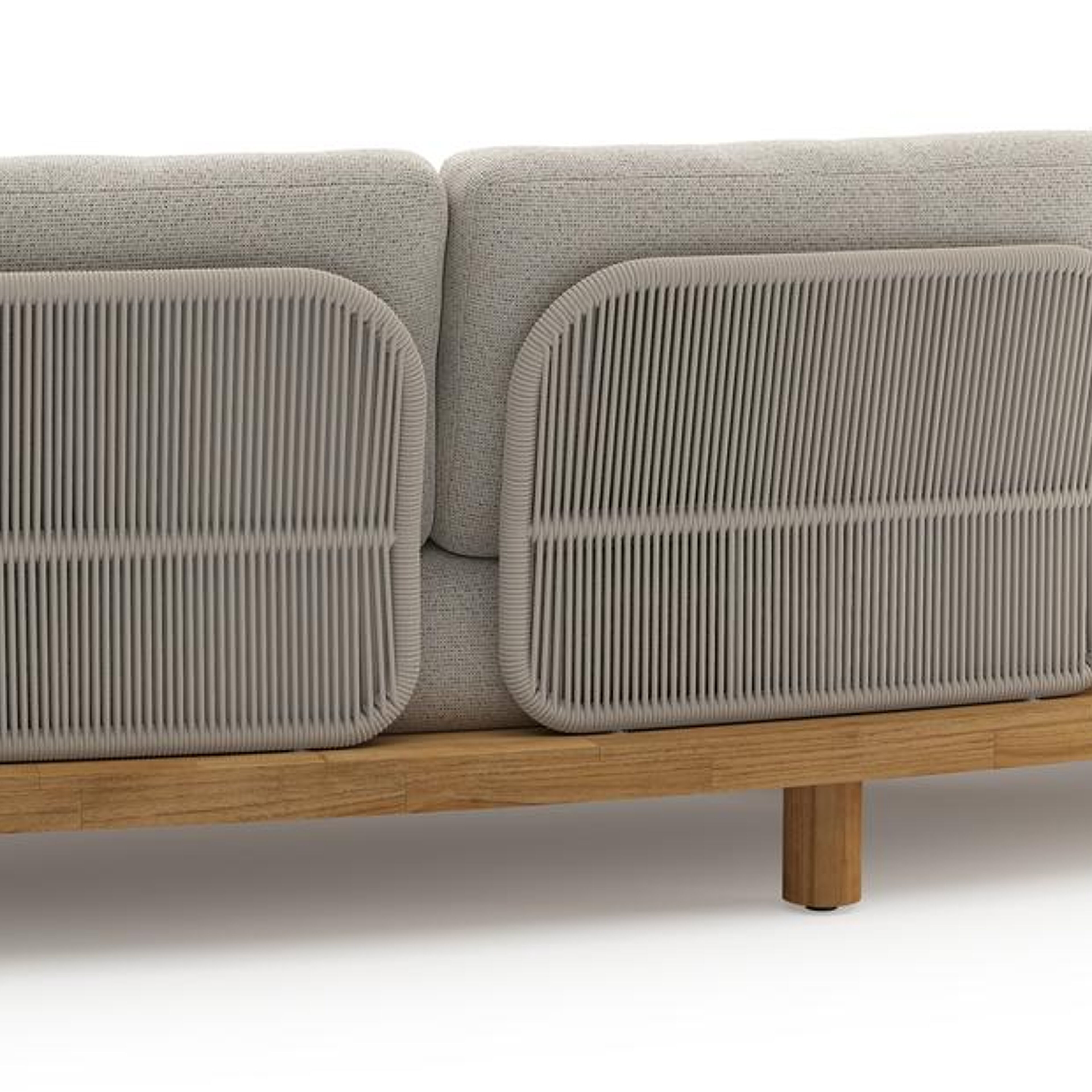Donato loungeset in teak en beige verticaal geweven ronde rope met all weather solica Firenze Natural kussen | Exterioo tuinmeubelen
