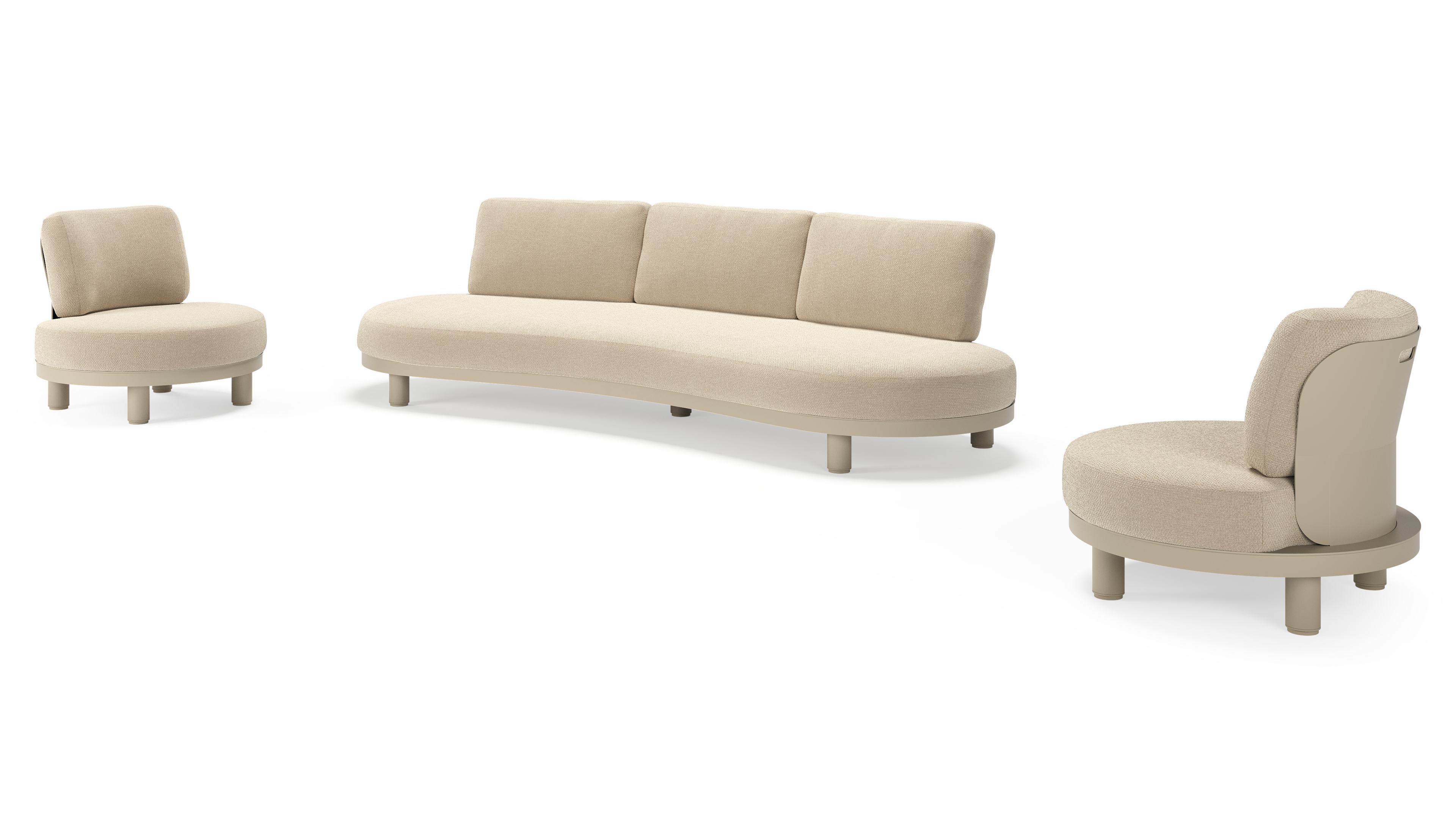 Donato loungeset in beige aluminium met all weather cosytica Althea Chalk kussen | Exterioo tuinmeubelen