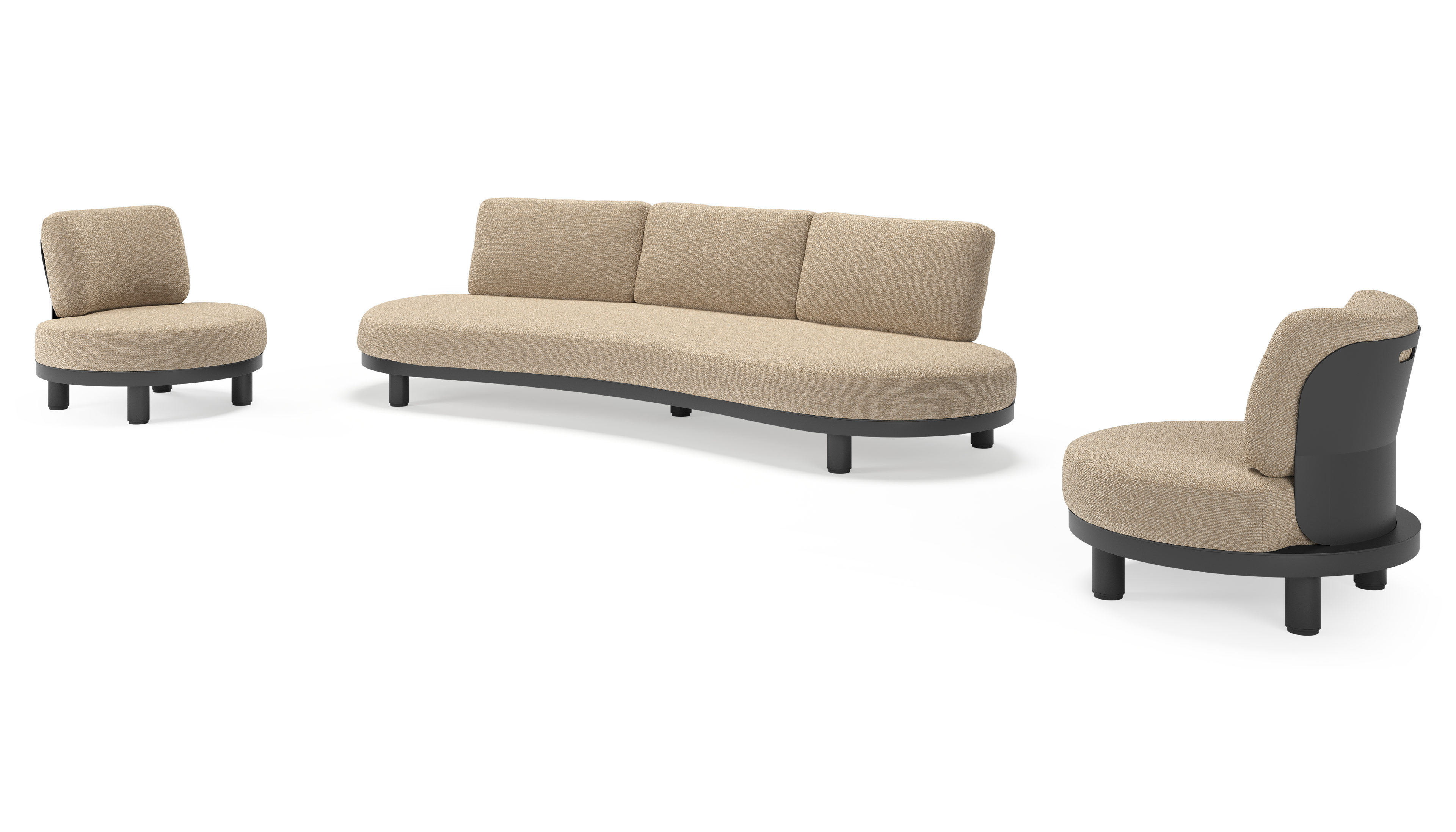 Donato loungeset in zwart aluminium met all weather cosytica Madagascar Oak kussen | Exterioo tuinmeubelen