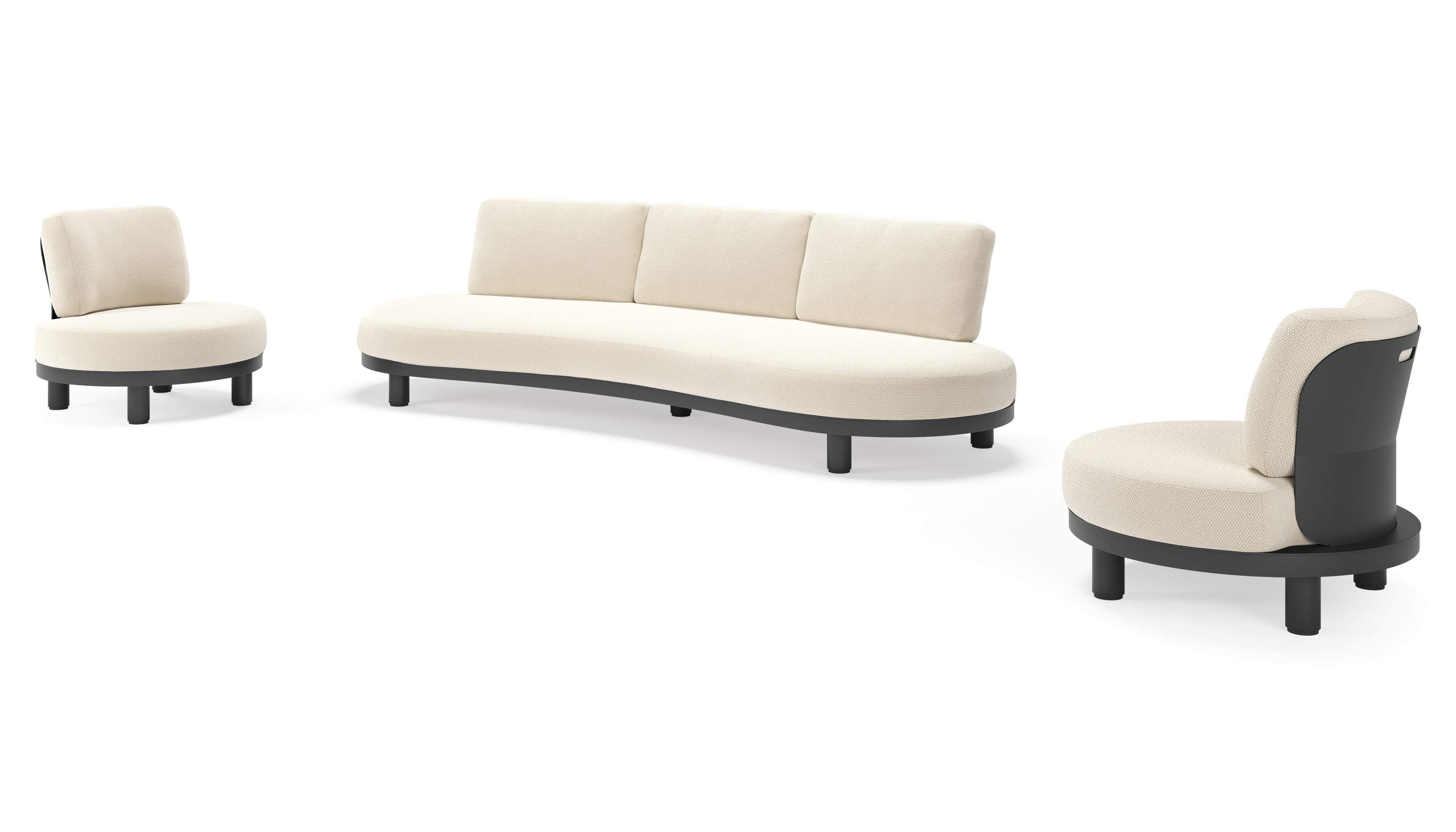 Donato loungeset in zwart aluminium met all weather cosytica Althea Off White kussen | Exterioo tuinmeubelen