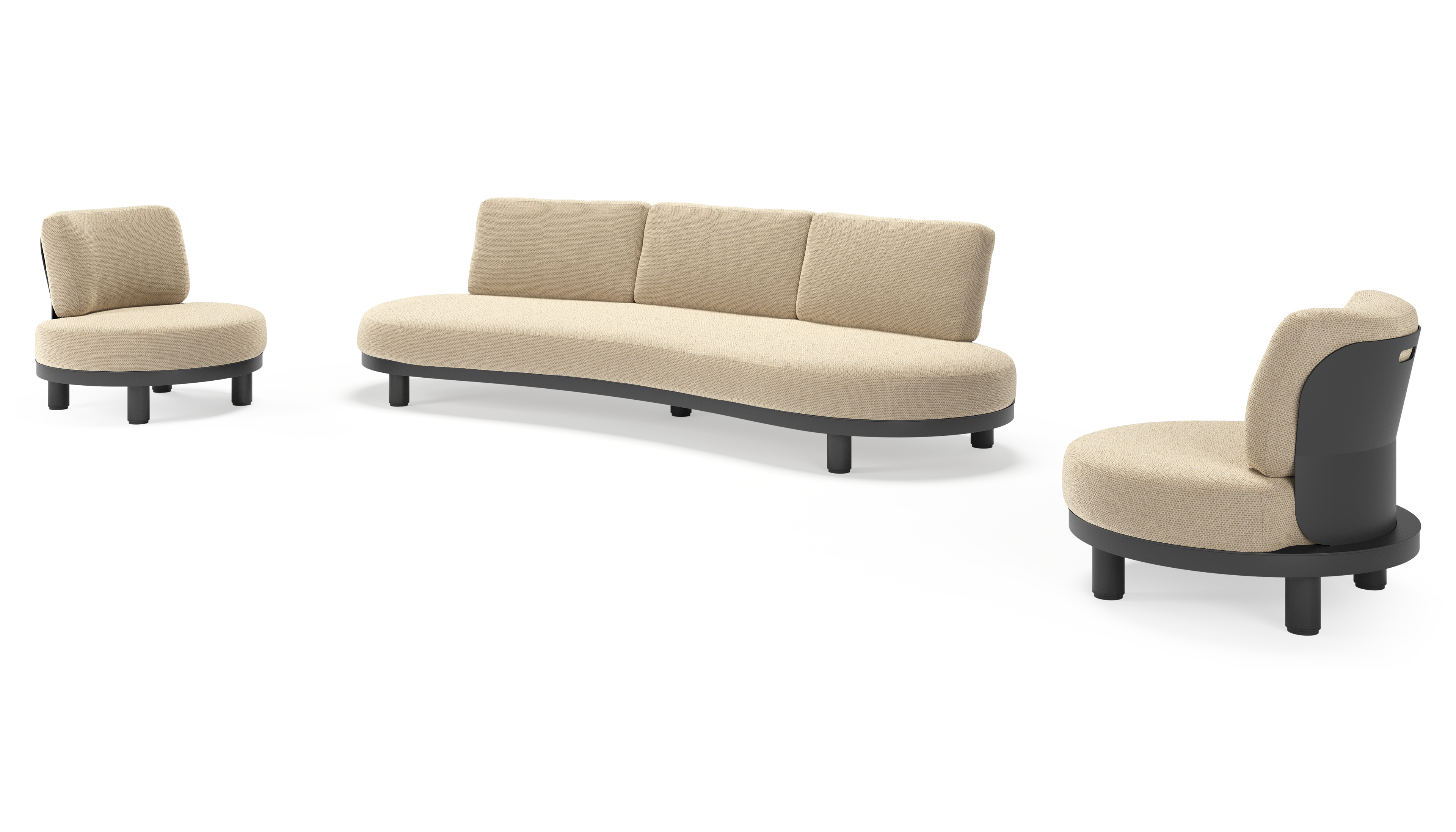 Donato loungeset in zwart aluminium met all weather cosytica Althea Camel kussen | Exterioo tuinmeubelen
