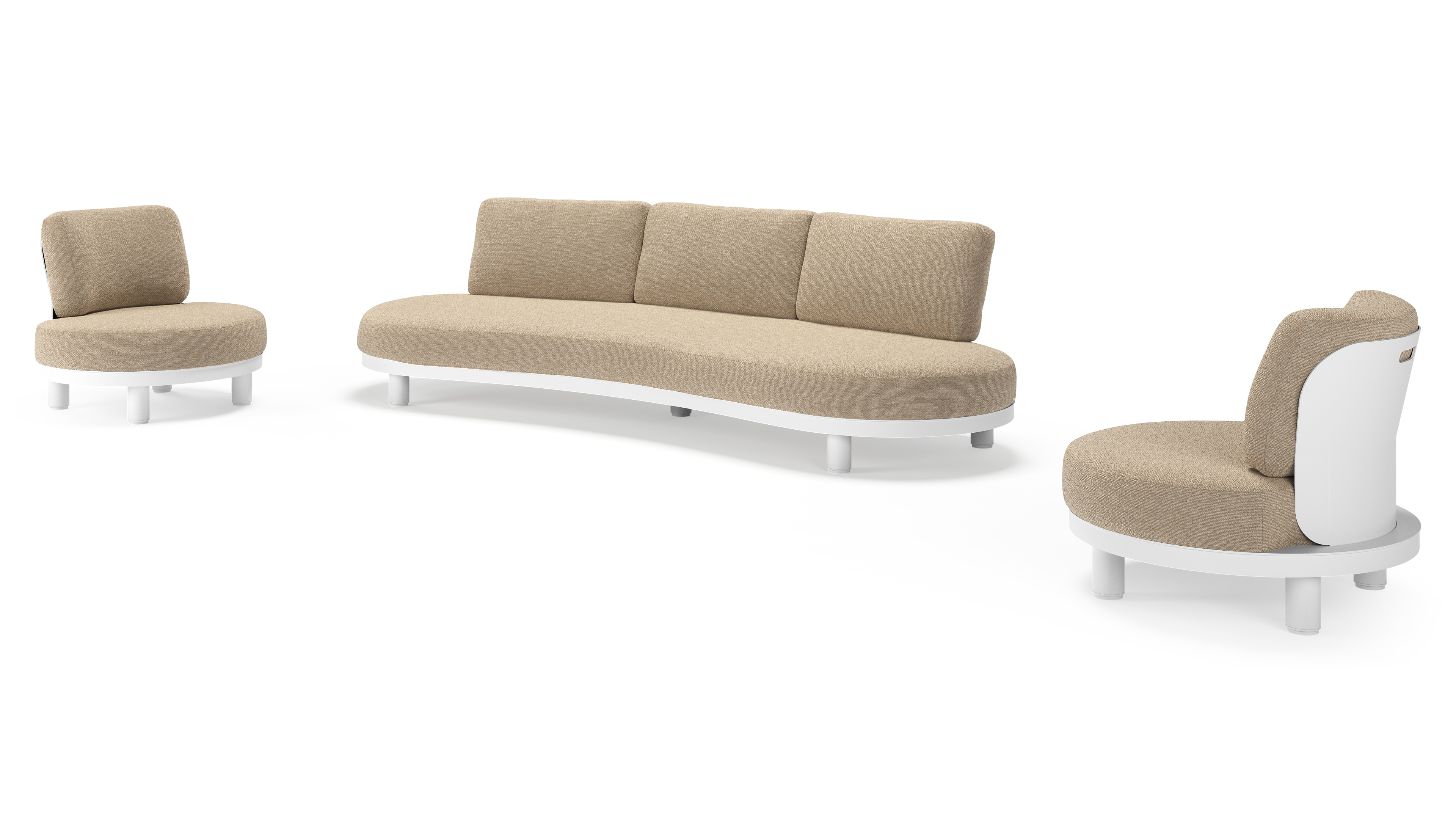 Donato loungeset in wit aluminium met all weather cosytica Madagascar Oak kussen | Exterioo tuinmeubelen
