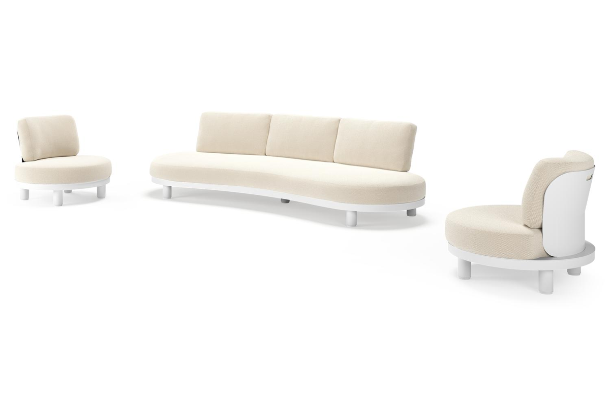 Donato omarmt de natuur met vloeiende vormen, warm teak en stijlvol aluminium in wit, zwart of beige. Een ontwerp dat rust uitstraalt, karakter toevoegt en natuurlijke elegantie naar je tuin brengt.