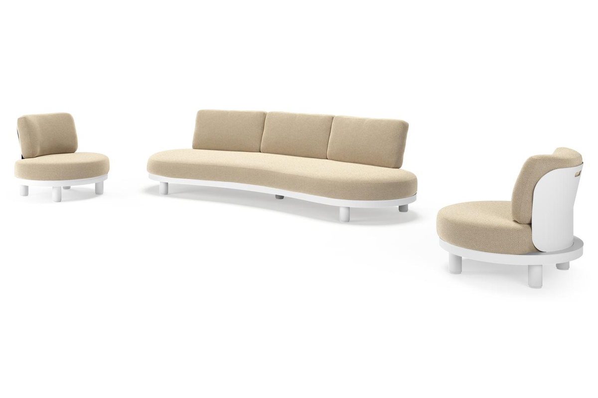Donato loungeset in wit aluminium met all weather cosytica Althea Camel kussen | Exterioo