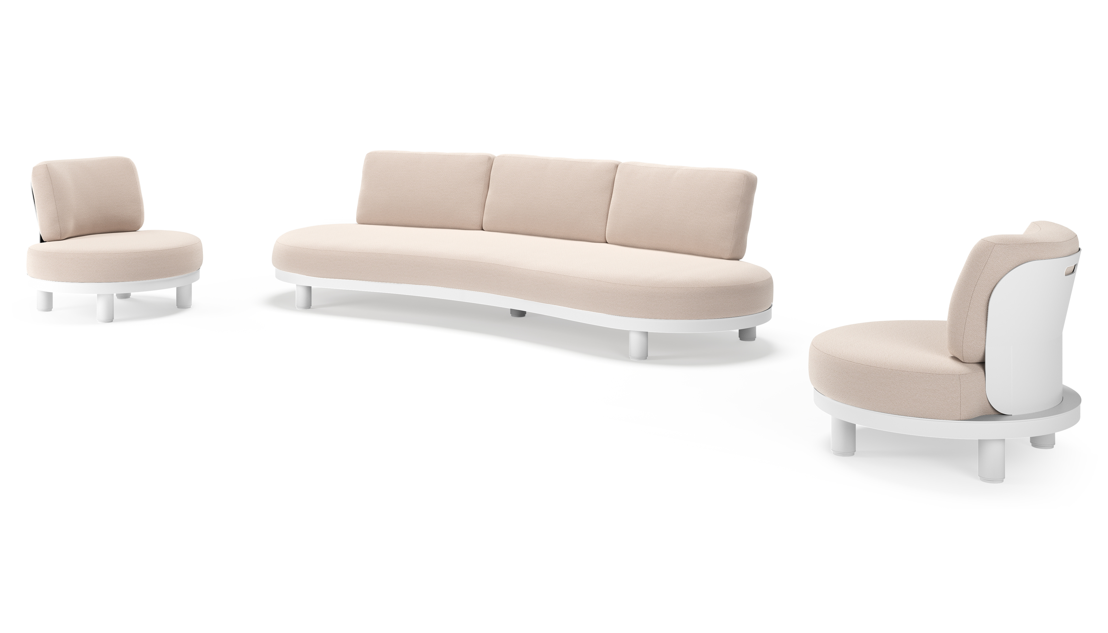 Donato omarmt de natuur met vloeiende vormen, warm teak en stijlvol aluminium in wit, zwart of beige. Een ontwerp dat rust uitstraalt, karakter toevoegt en natuurlijke elegantie naar je tuin brengt.
