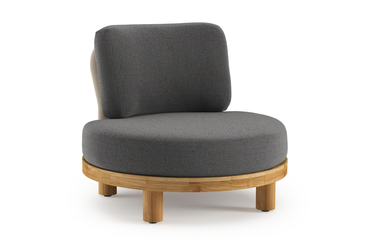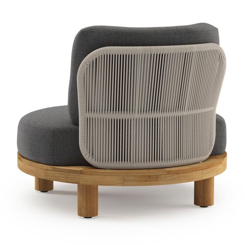 Donato loungestoel in teak en beige verticaal geweven ronde rope met all weather sunbrella® luxe Savane Tornado kussen | Exterioo