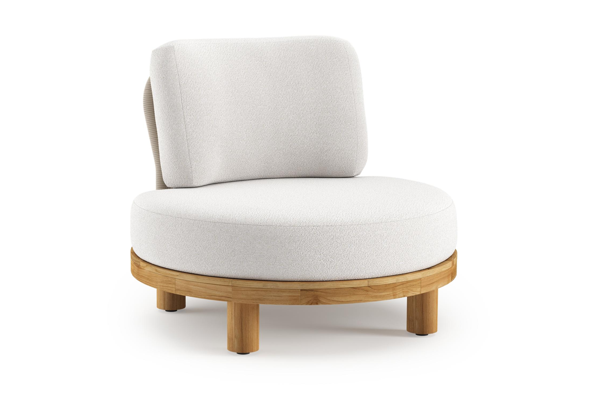 Donato loungestoel in teak en beige verticaal geweven ronde rope met all weather solica Soul Optik kussen | Exterioo