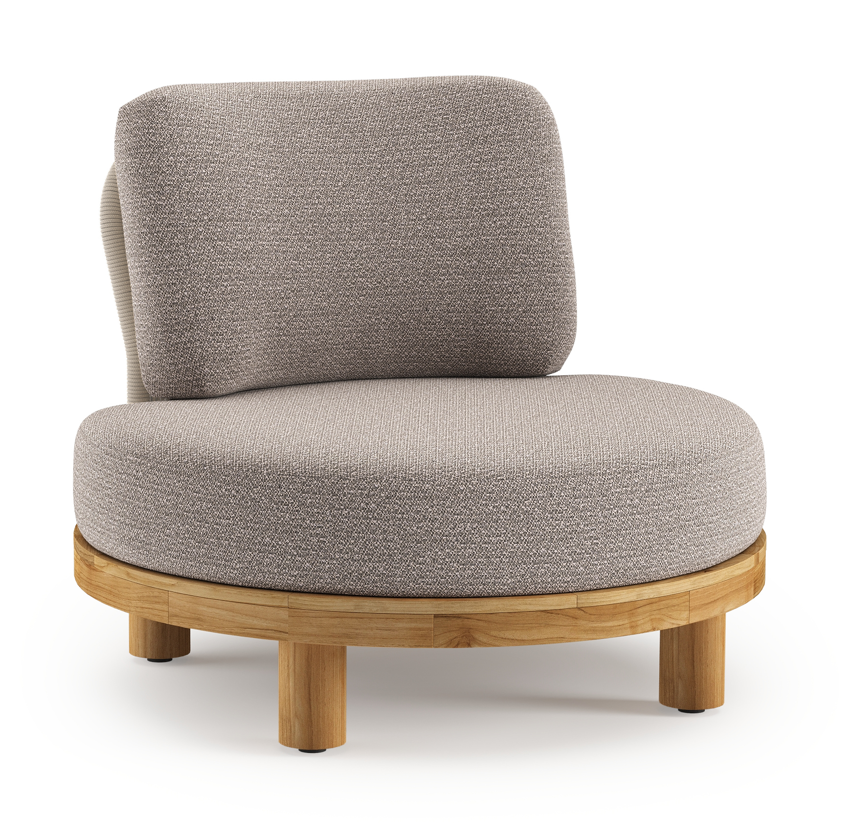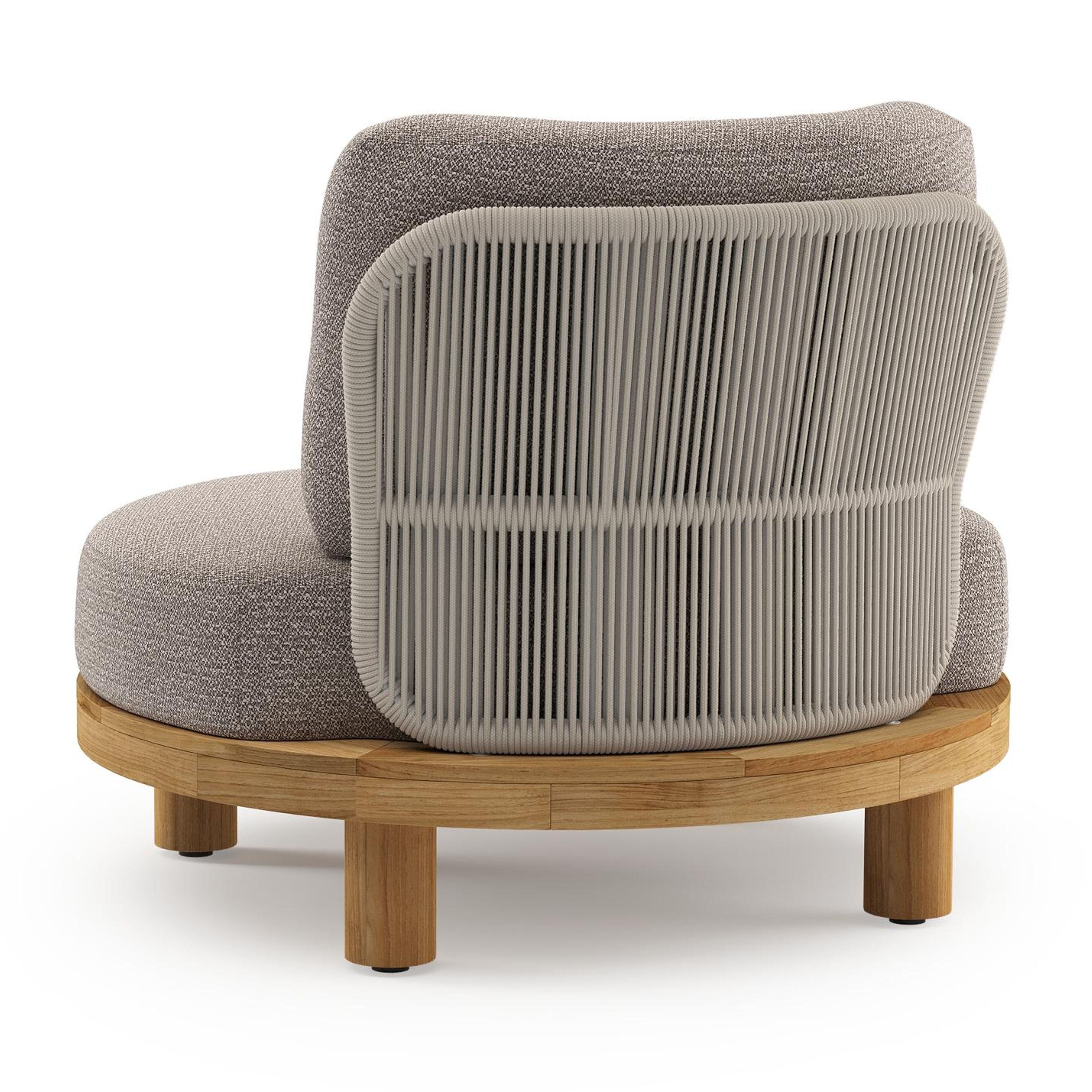 Donato loungestoel in teak en beige verticaal geweven ronde rope met all weather sunbrella® luxe Wander Granite kussen | Exterioo tuinmeubelen
