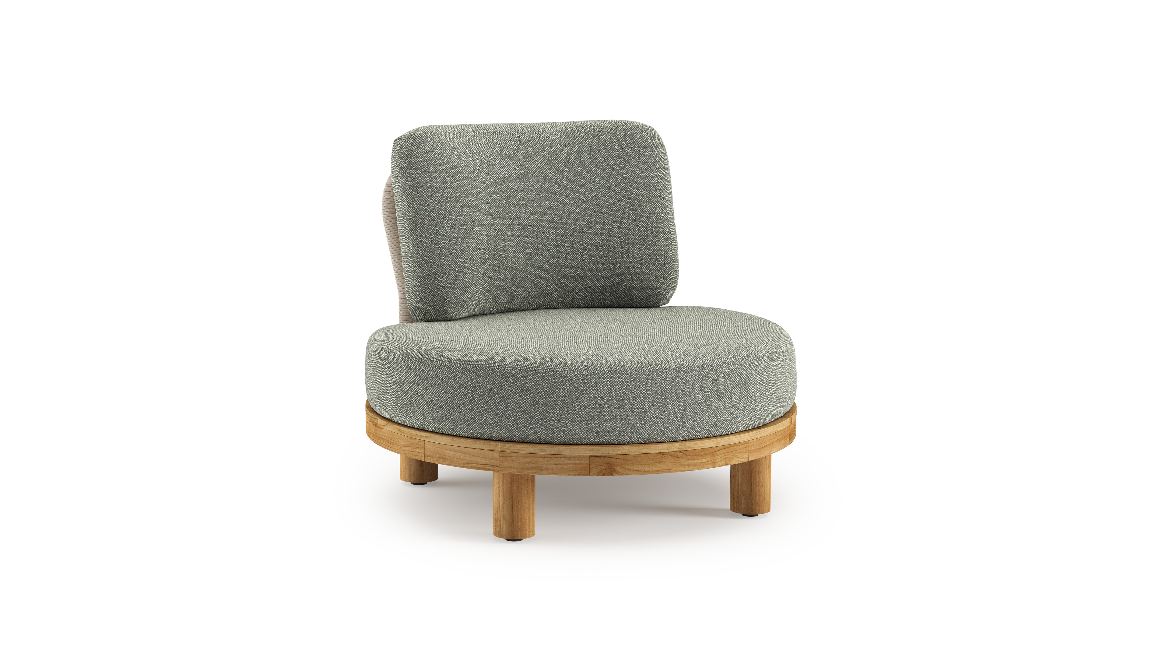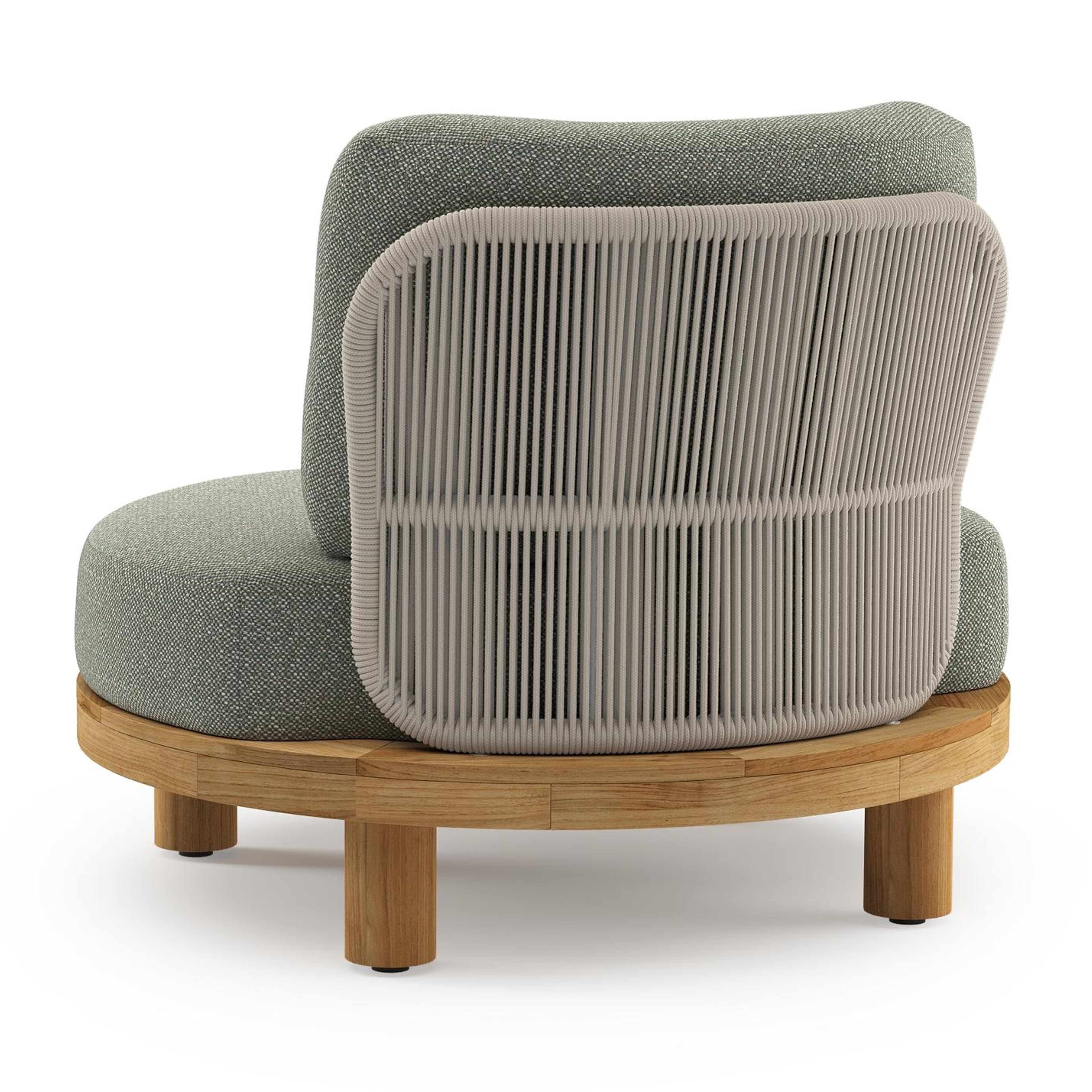 Donato loungestoel in teak en beige verticaal geweven ronde rope met all weather sunbrella® luxe Savane Leaf kussen | Exterioo tuinmeubelen
