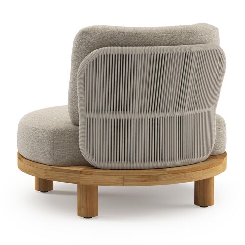 Donato loungestoel in teak en beige verticaal geweven ronde rope met all weather cosytica Catania Sand kussen | Exterioo
