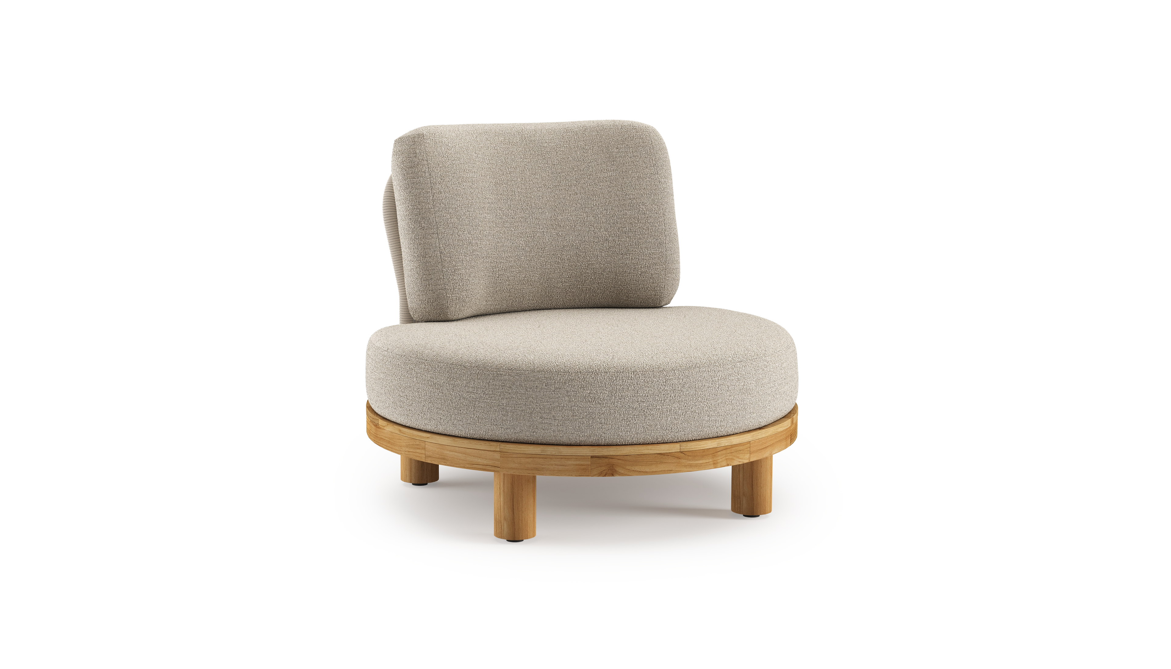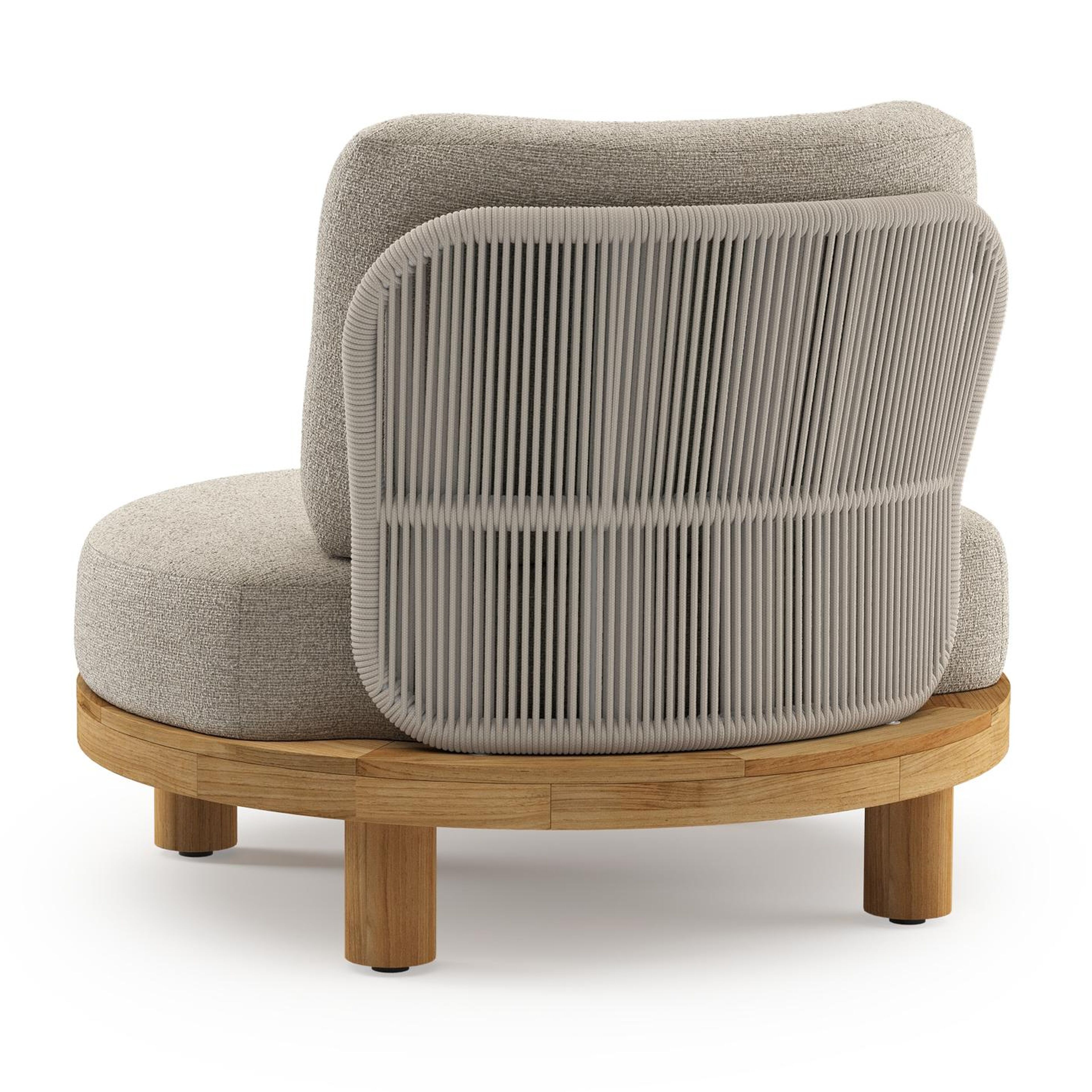 Donato loungestoel in teak en beige verticaal geweven ronde rope met all weather cosytica Catania Greige kussen | Exterioo tuinmeubelen