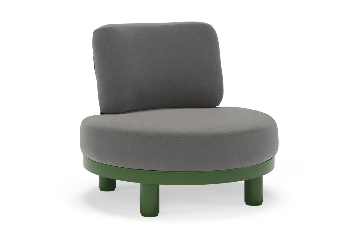 Donato loungestoel in groen aluminium met all weather sunbrella® luxe Natte Charcoal Chine kussen | Exterioo
