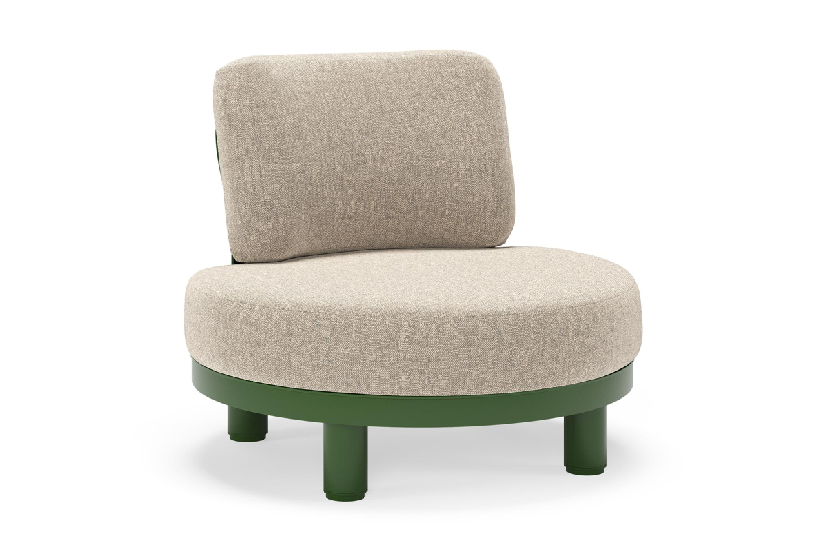 Donato loungestoel in groen aluminium met all weather sunbrella® luxe Chartres Pewter kussen | Exterioo
