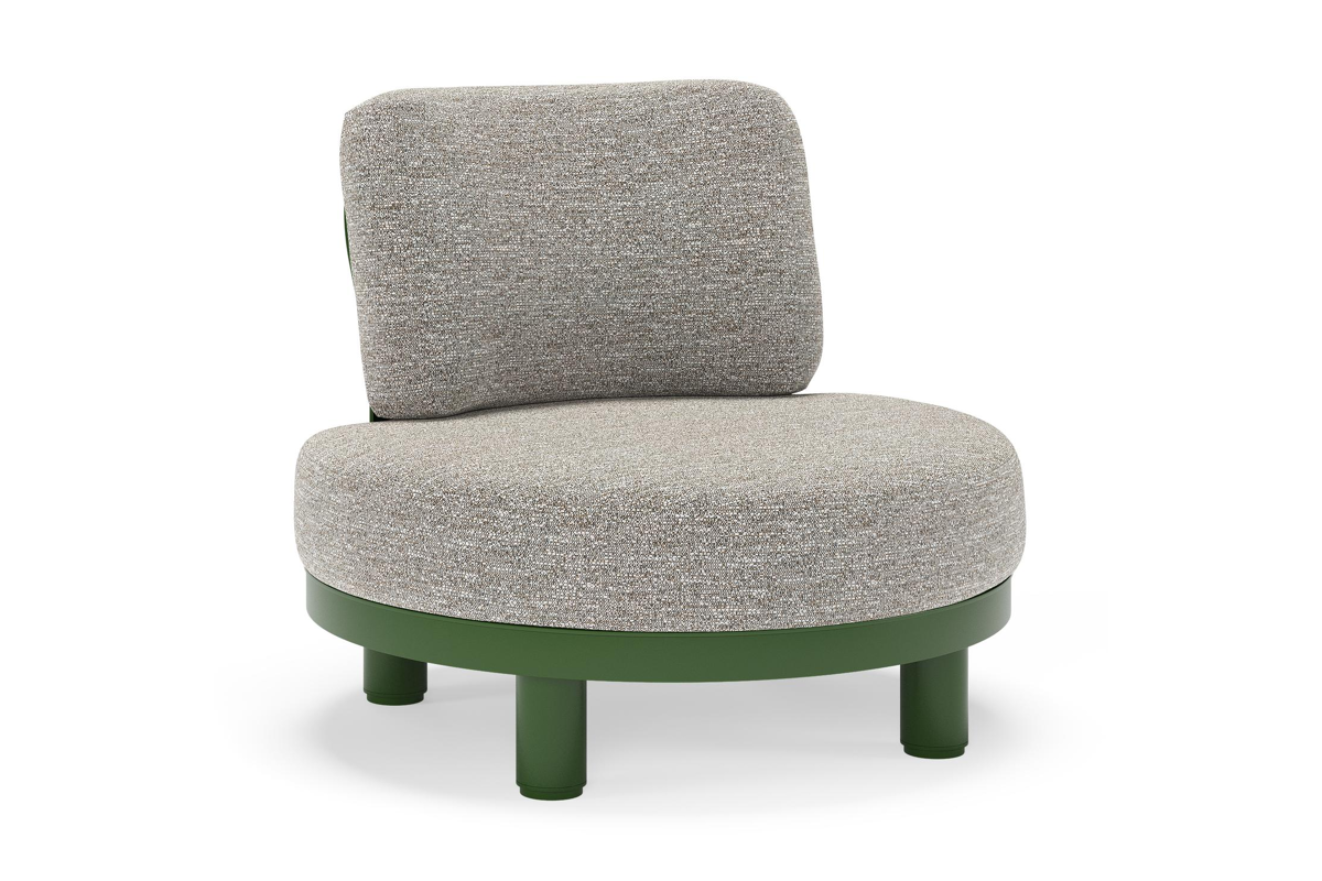 Donato loungestoel in groen aluminium met all weather sunbrella® luxe Tundra Pepper kussen | Exterioo