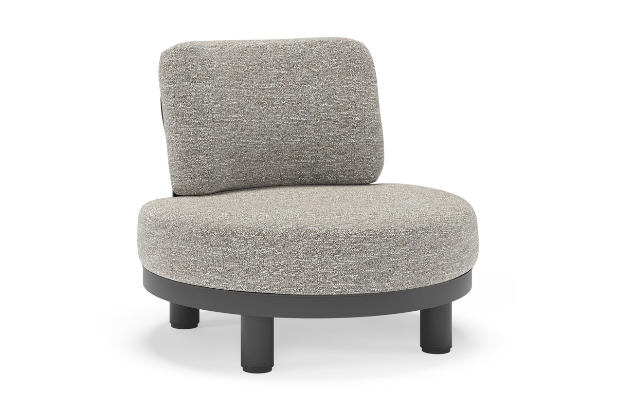 Donato loungestoel in zwart aluminium met all weather sunbrella® luxe Tundra Pepper kussen | Exterioo