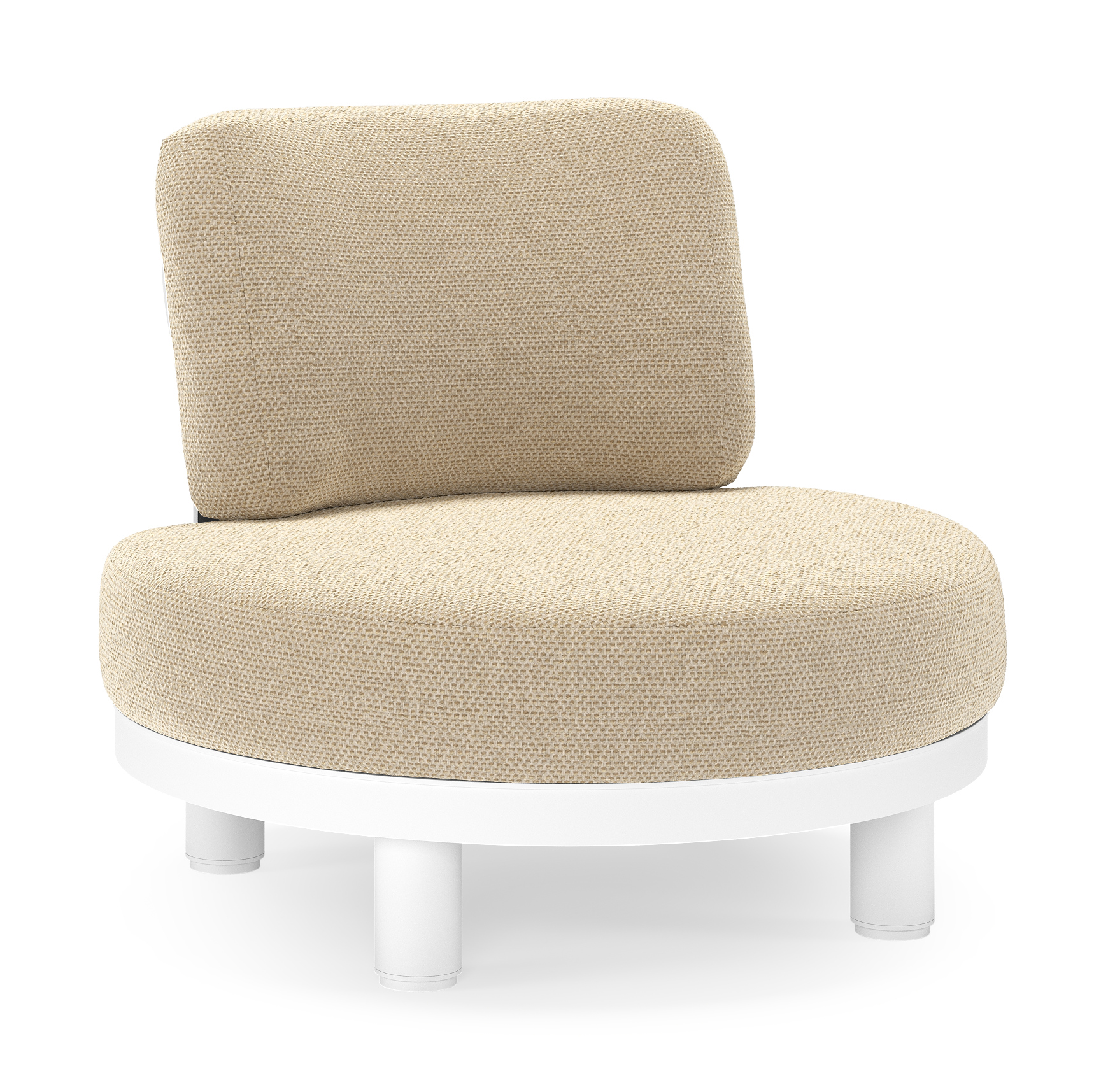 Donato loungestoel in wit aluminium met all weather cosytica Althea Camel kussen | Exterioo tuinmeubelen