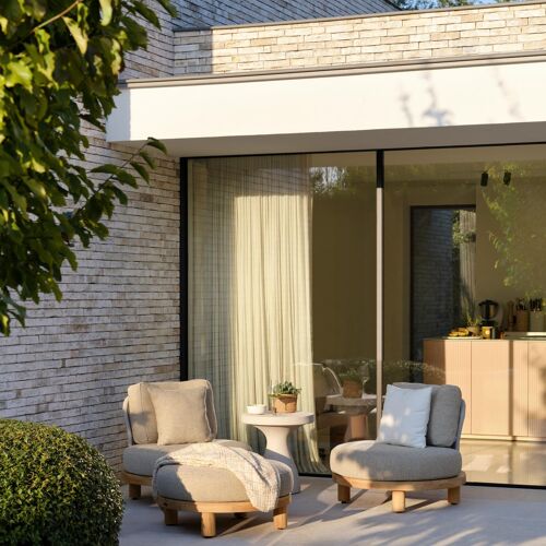 Donato loungestoel 1-zit in teak met madagascar oak all weather Casettica kussen | Exterioo