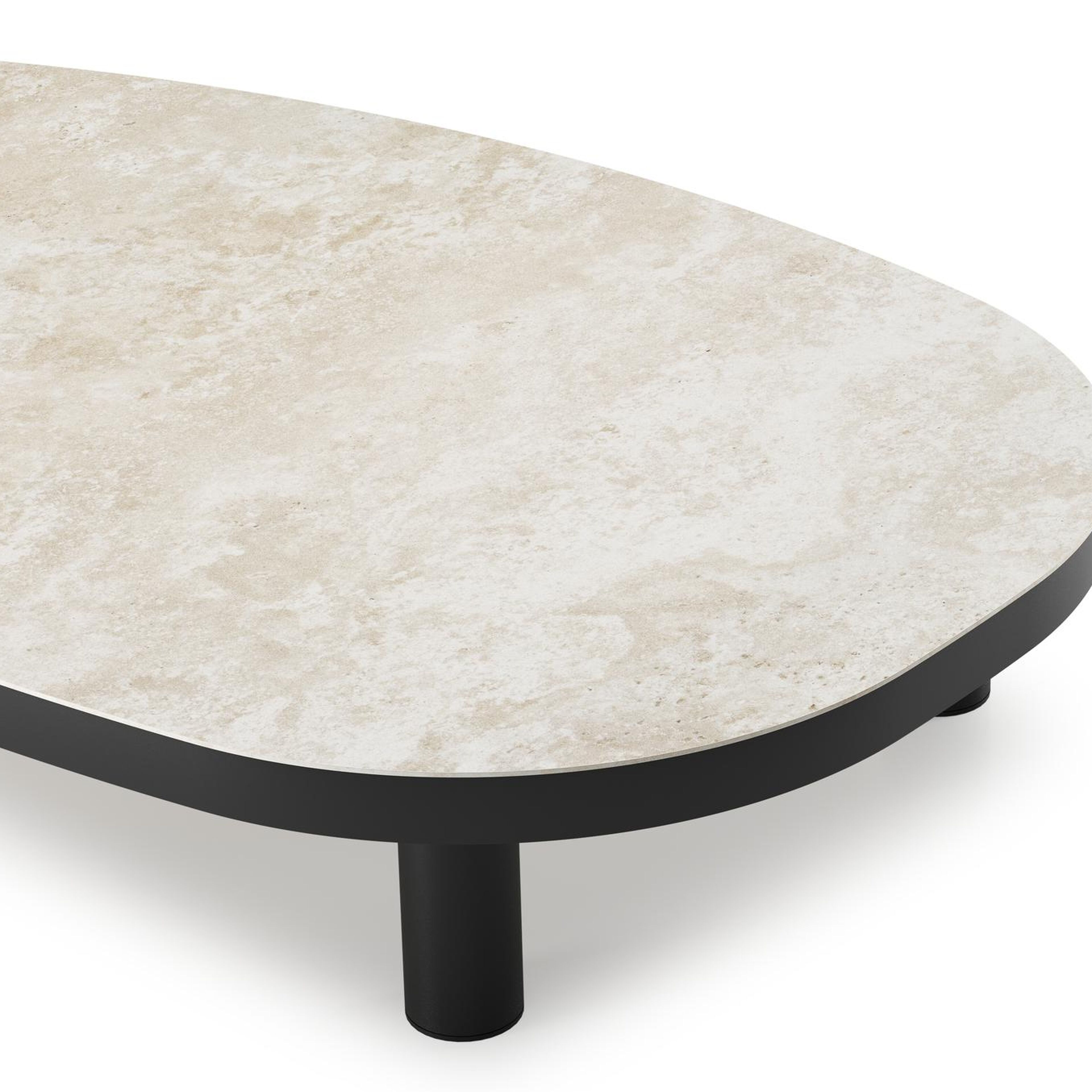 De Donato loungetafel is een trendy exemplaar dankzij zijn organische vorm. Het frame is strak aluminium. Het Wulong tafelblad heeft een donkerder oppervlak met grijs-bruintinten en korrelige details. Het blad werd geà¯nspireerd op één van de spectaculairste kalksteenformaties van Wulong in China, gekend om zijn kracht en karakter. Met dit tafelblad haal je de kracht van de natuur naar je tuin.