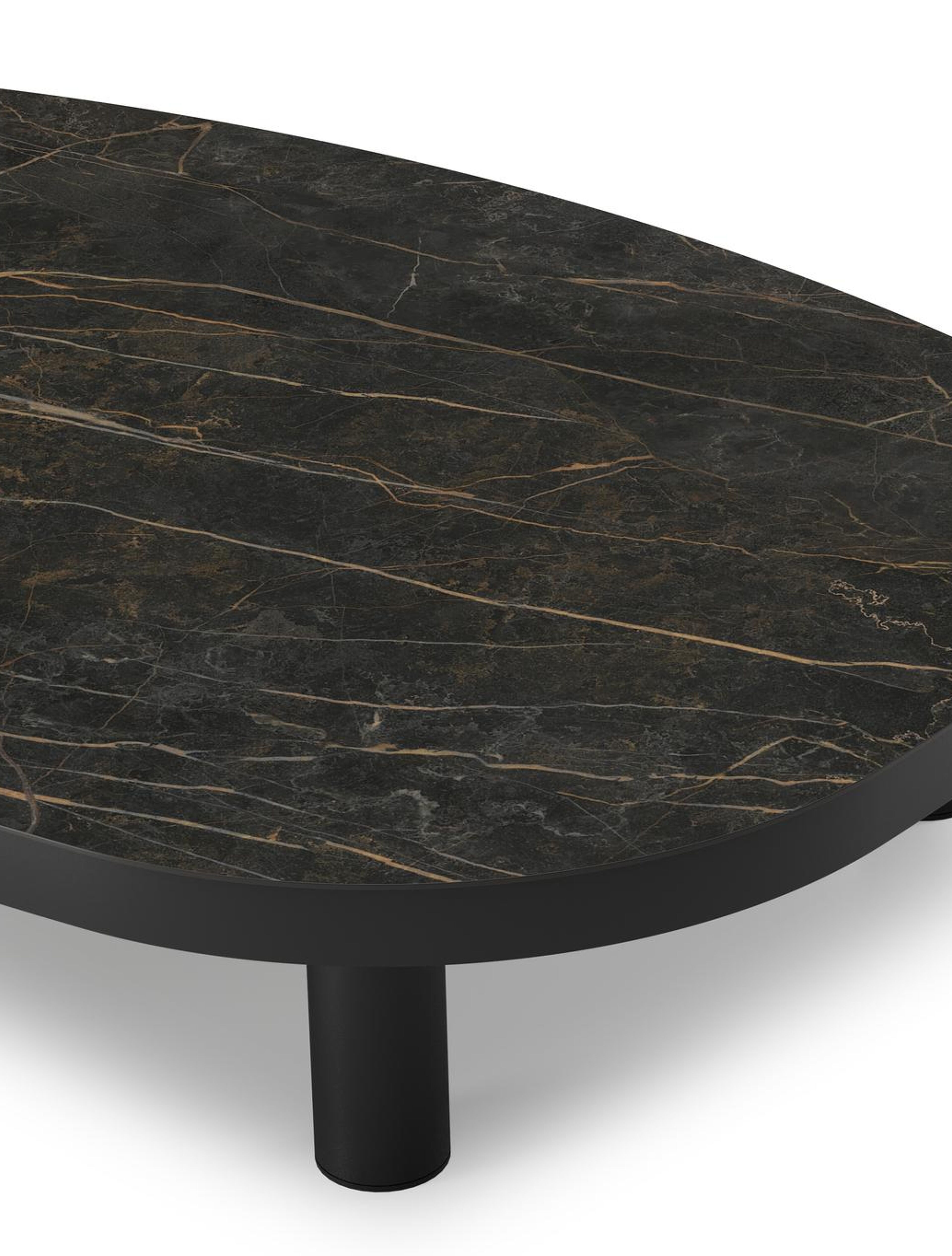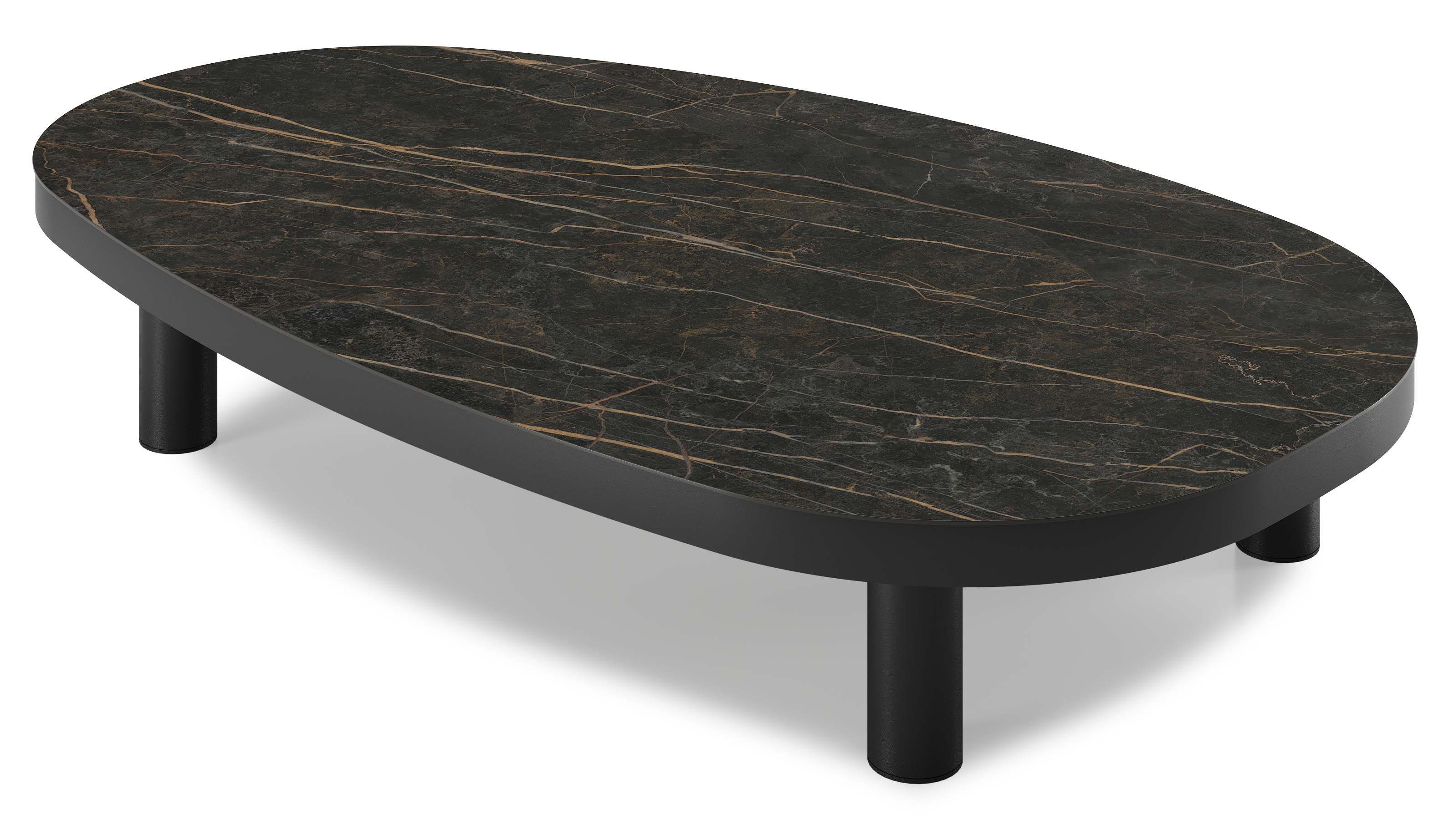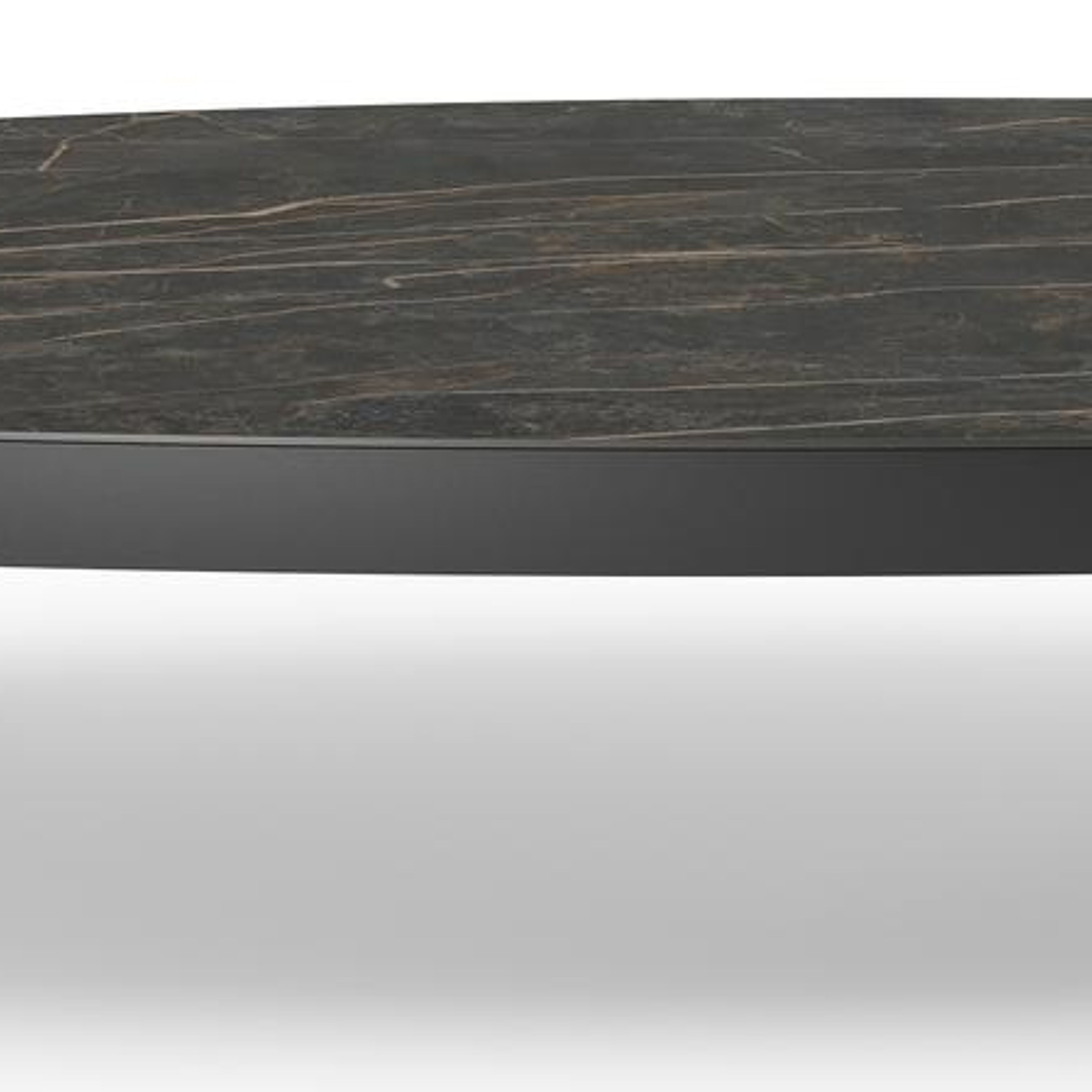 De Donato loungetafel is een trendy exemplaar dankzij zijn organische vorm. Het frame is strak aluminium. Deze loungtafel is afgewerkt met een Black Obsession tafelblad. Black Obsession is echte eyecatcher voor wie het graag iets luxueuzer heeft. De ondergrond van het blad is zwart maar is afgewerkt met goudgele aders die een prachtige marmerlook creëren.