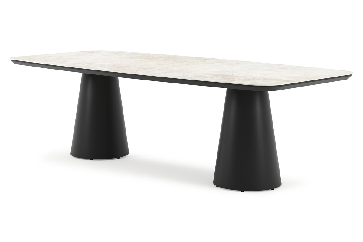 Donato tuintafel bootvorm in zwart aluminium en volkeramiek Rapolano L 255 x B 115 cm | Exterioo