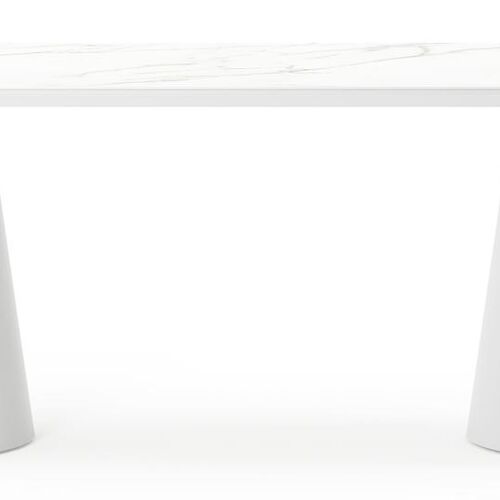 De Donato tuintafel omarmt elegantie in de buitenlucht met robuuste speelse vormen. Met een conische poot volledig gemaakt uit aluminium en een afgerond tafelblad, creëert deze tafel een harmonieuze samensmelting van een hedendaags design en een robuuste look.
