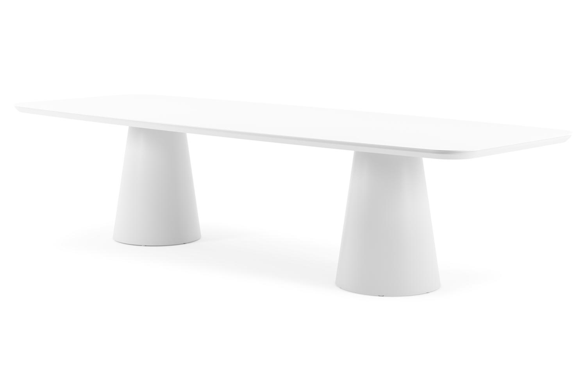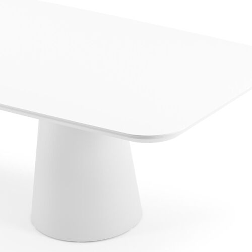 De Donato tuintafel omarmt elegantie in de buitenlucht met robuuste speelse vormen. Met een conische poot volledig gemaakt uit aluminium en een afgerond tafelblad, creëert deze tafel een harmonieuze samensmelting van een hedendaags design en een robuuste look.