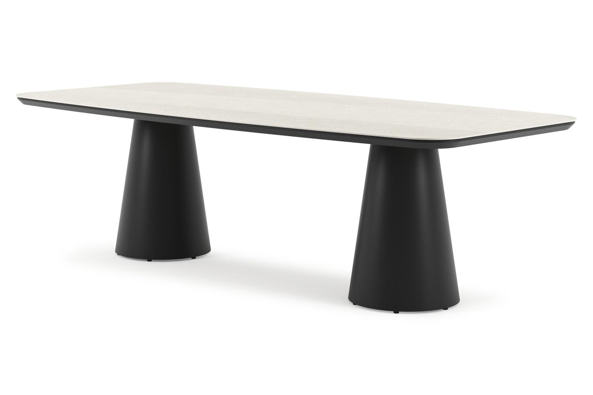 De Donato tuintafel omarmt elegantie in de buitenlucht met robuuste speelse vormen. Met een conische poot volledig gemaakt uit aluminium en een afgerond tafelblad, creëert deze tafel een harmonieuze samensmelting van een hedendaags design en een robuuste look.