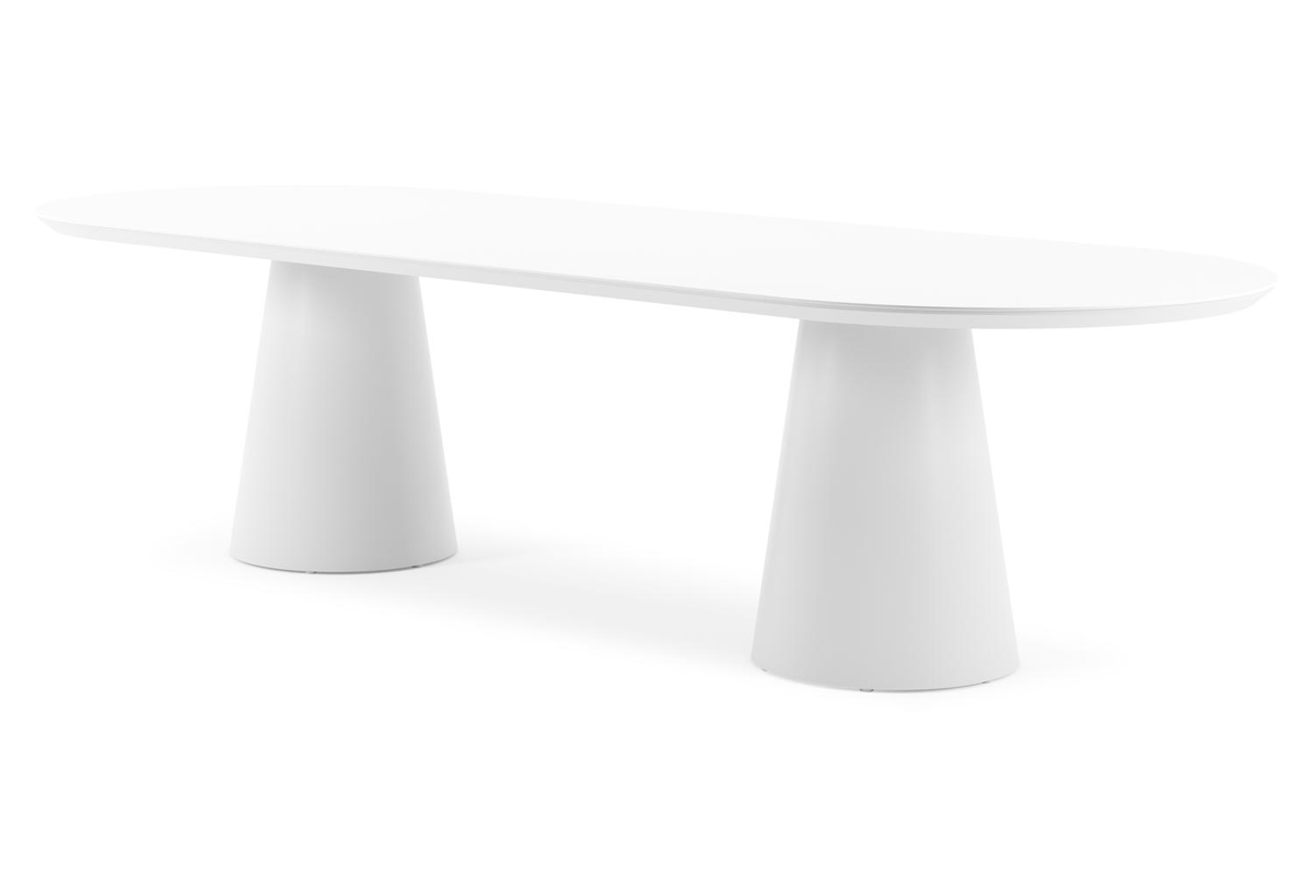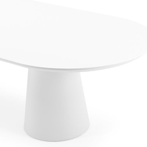 De Donato tuintafel omarmt elegantie in de buitenlucht met robuuste speelse vormen. Met een conische poot volledig gemaakt uit aluminium en een afgerond tafelblad, creëert deze tafel een harmonieuze samensmelting van een hedendaags design en een robuuste look.