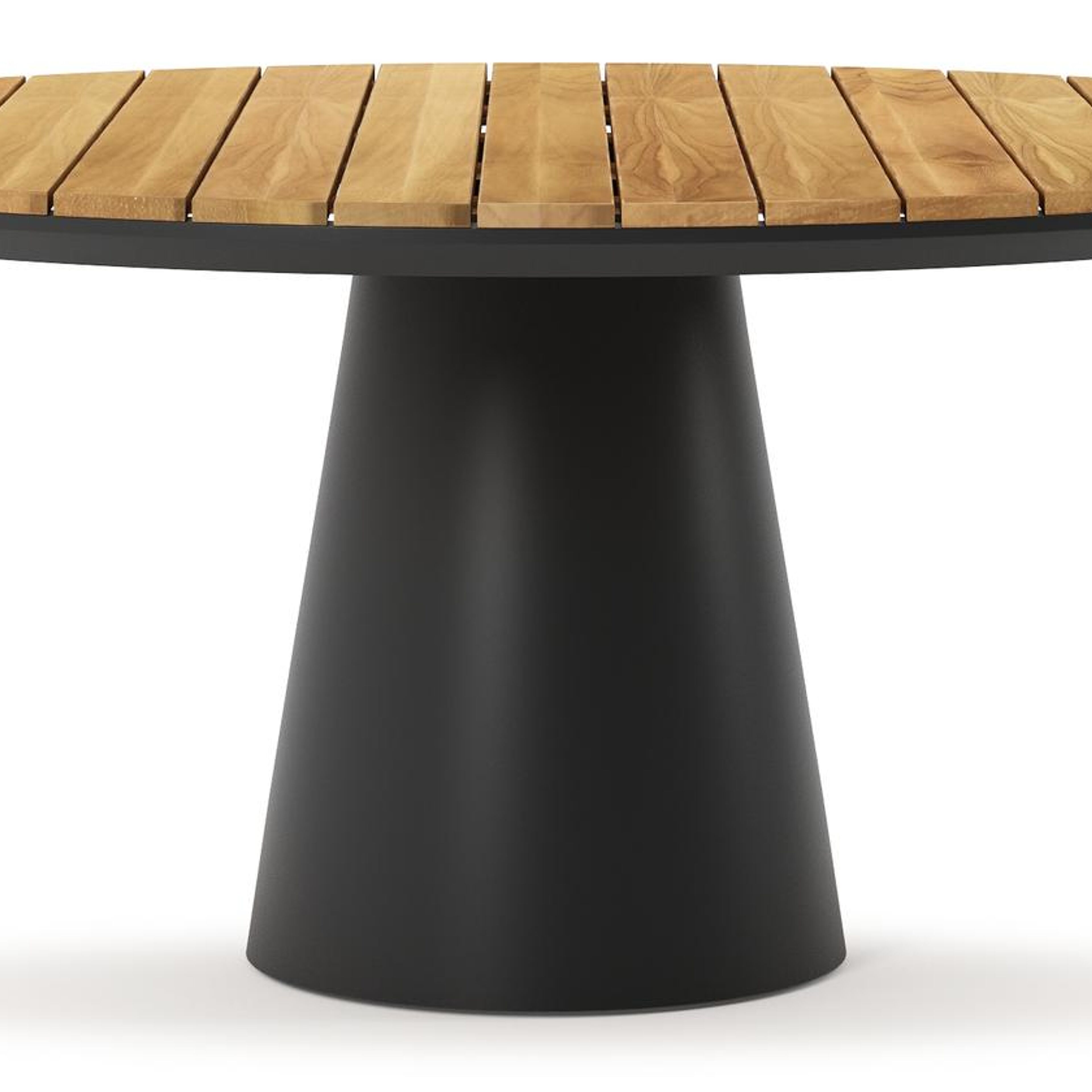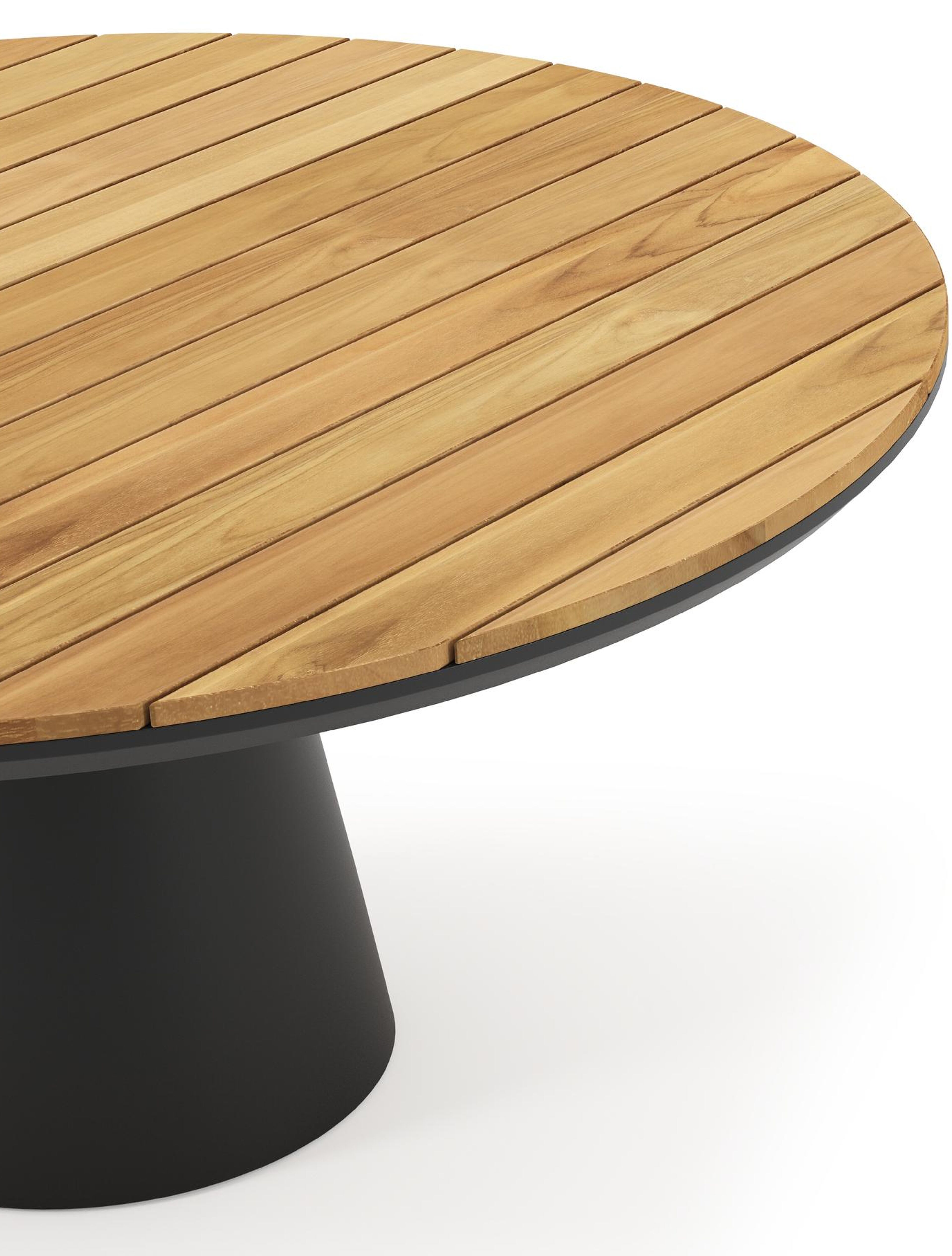 De Donato tuintafel omarmt elegantie in de buitenlucht met robuuste speelse vormen. Met een conische poot volledig gemaakt uit aluminium en een afgerond tafelblad, creëert deze tafel een harmonieuze samensmelting van een hedendaags design en een robuuste look.