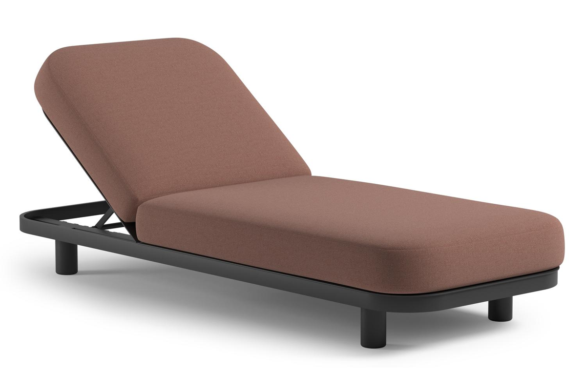 Donato verstelbaar ligbed in zwart aluminium met savane rust all weather Sunbrella® luxe kussen | Exterioo