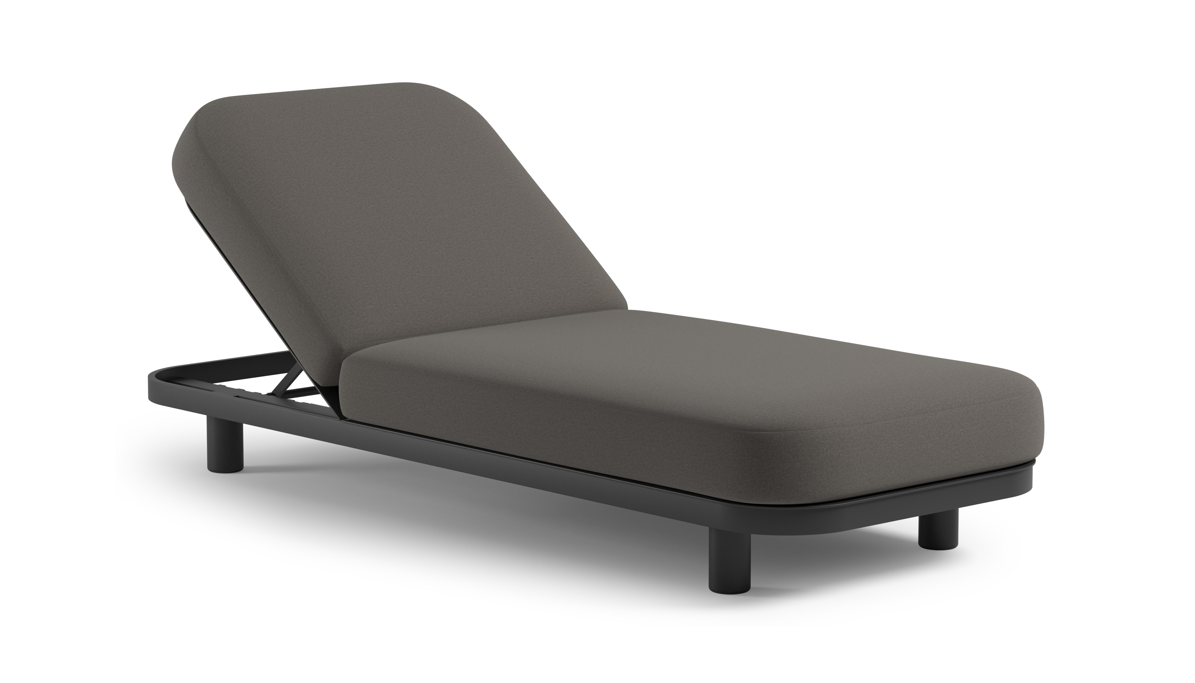 Donato verstelbaar ligbed in zwart aluminium met natte dark taupe all weather Sunbrella® luxe kussen | Exterioo tuinmeubelen