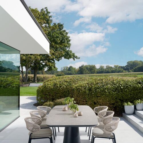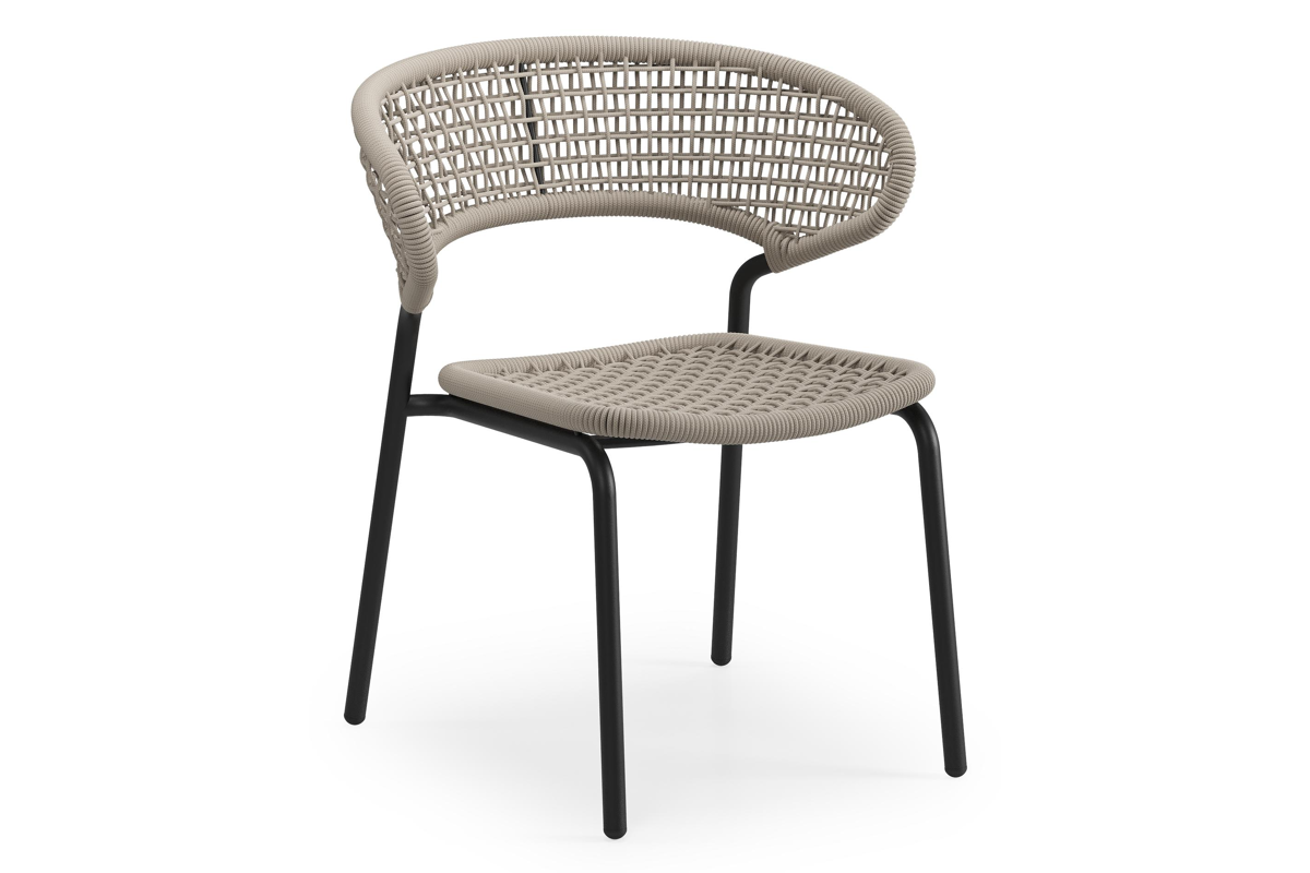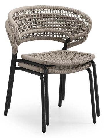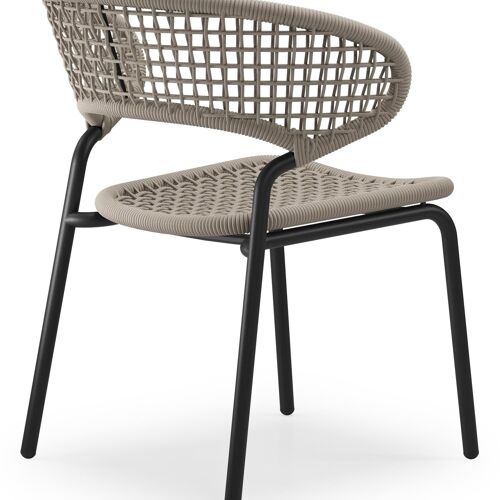 Donato XL tuinstoel in zwart aluminium en beige vierkant geweven ronde rope | Exterioo
