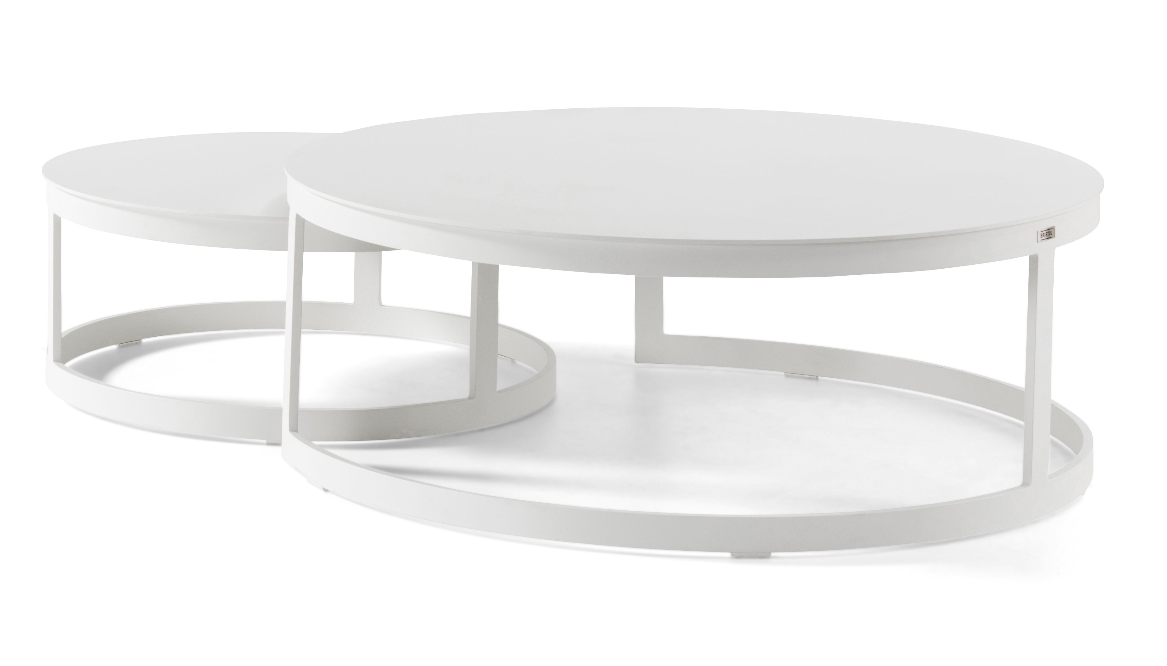 De set van twee ronde Enna loungetafels is een perfecte aanvulling op jouw lounge. De tafels zijn volledig gemaakt van hoogwaardig, roestvrij aluminium. Je kan ze individueel gebruiken, maar ook gecombineerd in set. Je kan de kleine tafel volledig onder de tafel schuiven.
