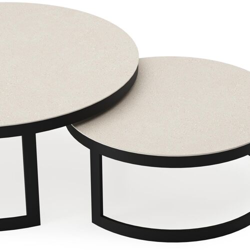 Enna set van 2 loungetafels in zwart aluminium en Beige volkeramiek - Dia. 100/70 x H 37/30 cm | Exterioo