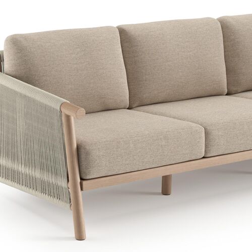 Erla loungeset in houtlook verticaal geweven ronde rope en beige verticaal geweven ronde rope met rustic weather+ softtouch kussen | Exterioo