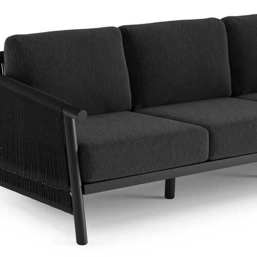 Erla loungeset in zwart aluminium met zwart weather+ softtouch kussens en loungetafel | Exterioo