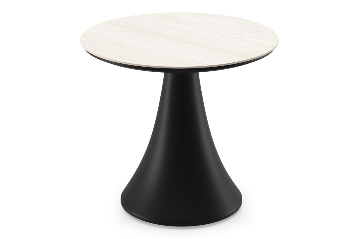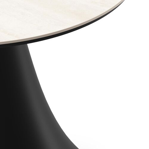 Fano low dining loungetafel rond in zwart aluminium en volkeramiek Travertino Bianco - Dia. 65 x H 40 cm | Exterioo