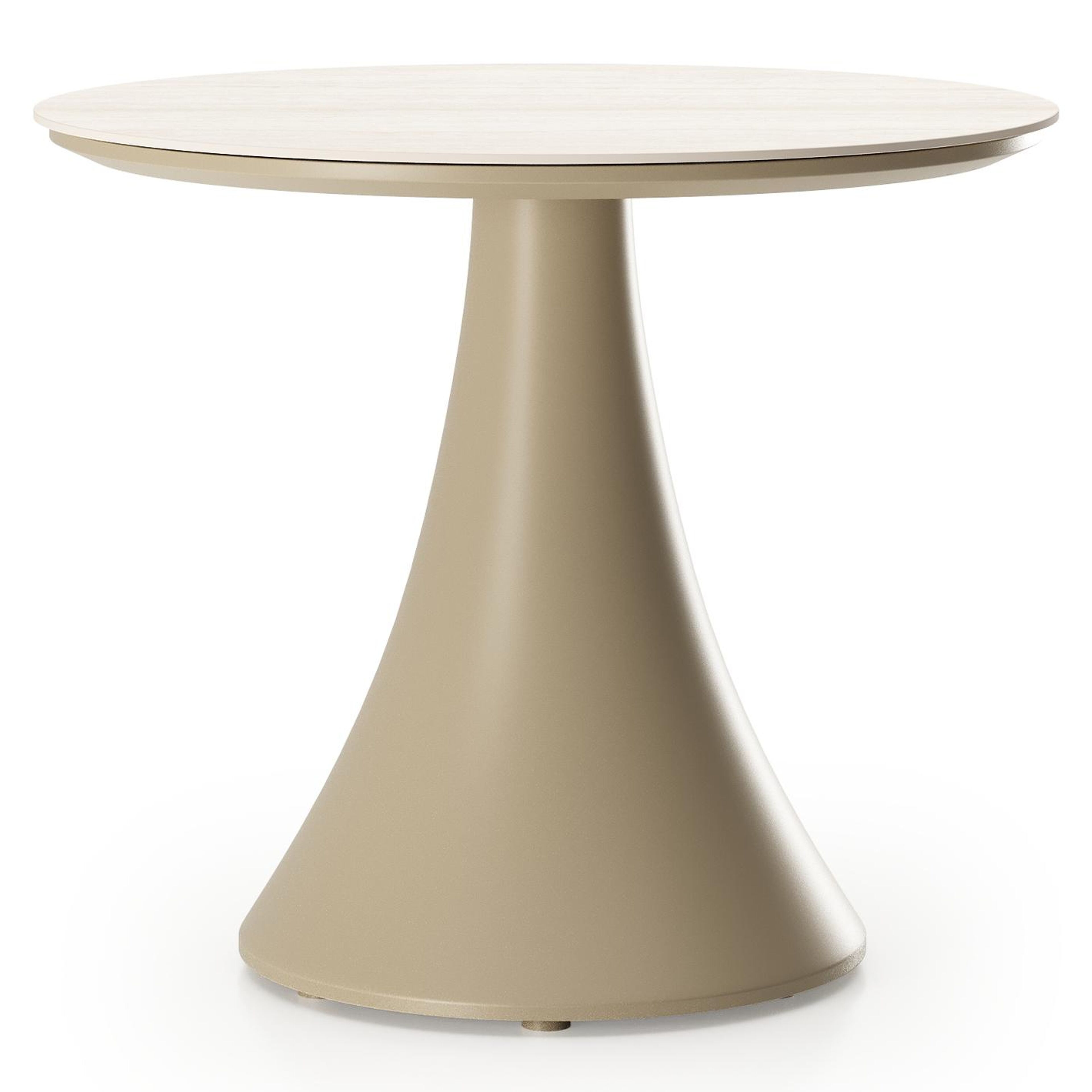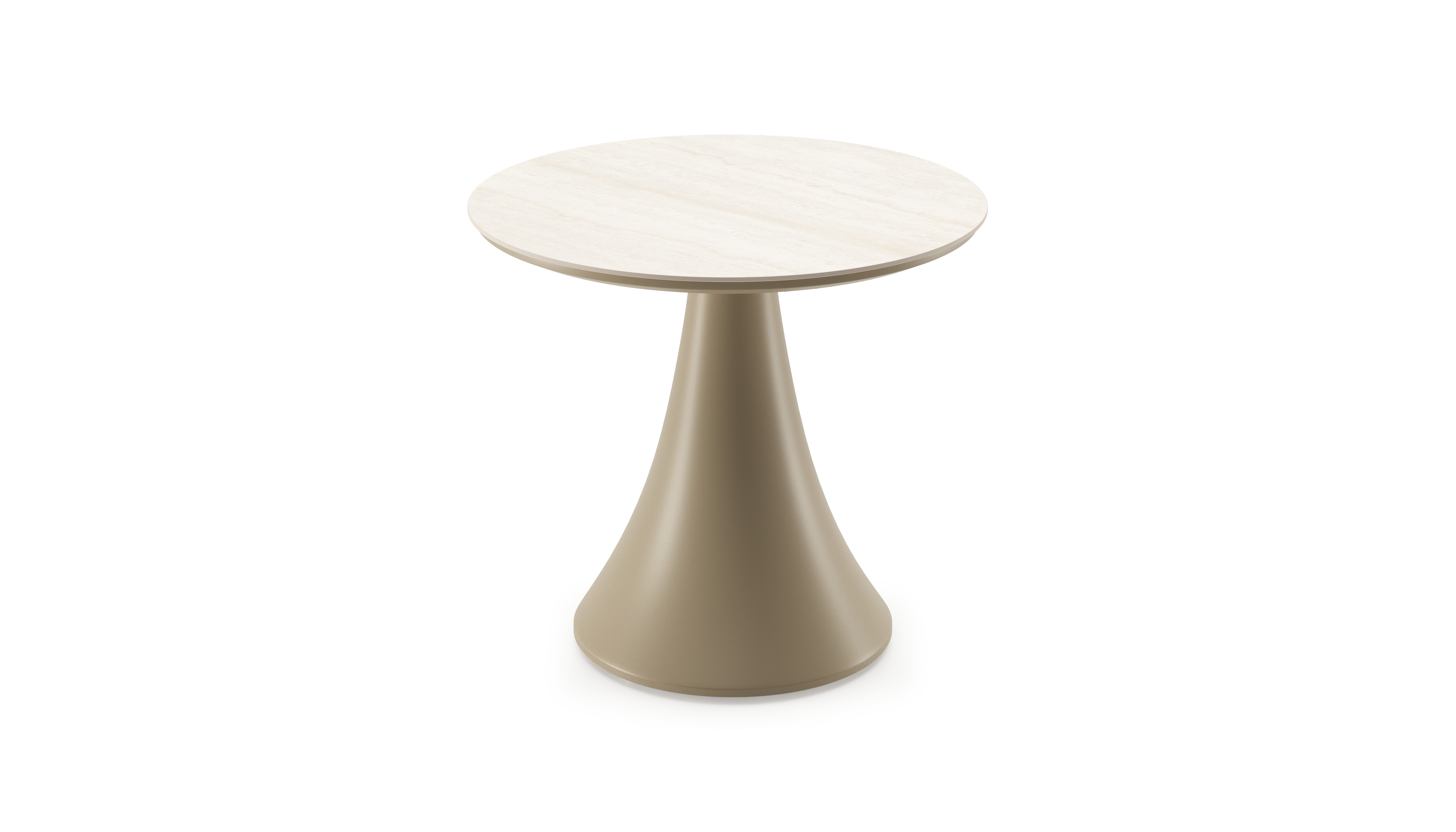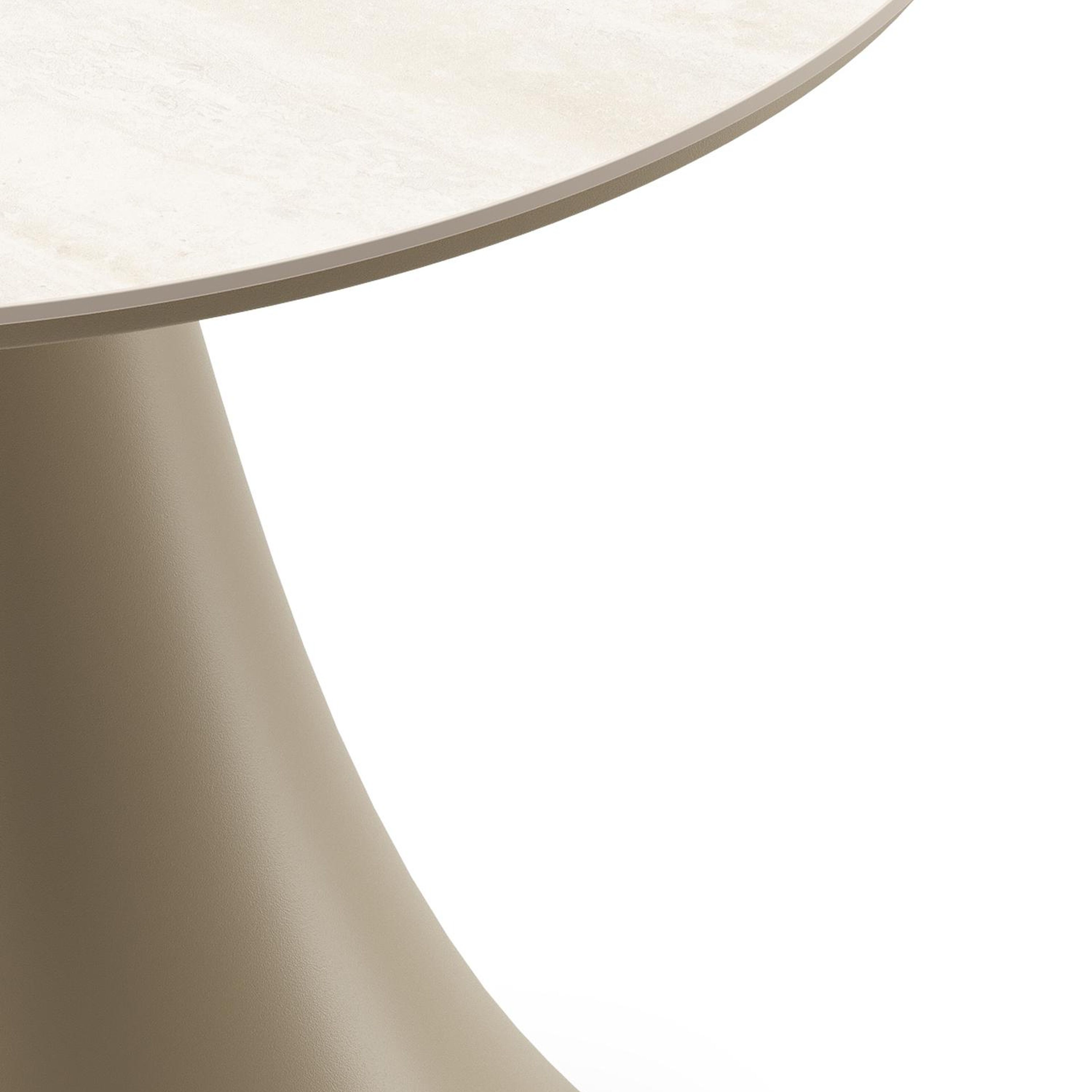 Fano low dining loungetafel rond in beige aluminium en volkeramiek Travertino Bianco - Dia. 65 x H 55 cm | Exterioo tuinmeubelen