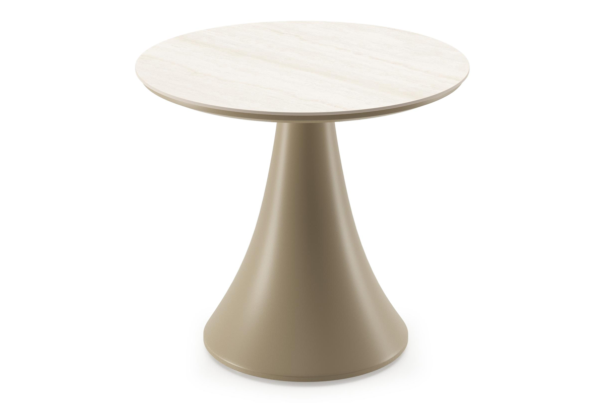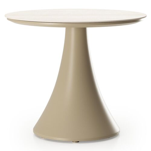 Fano low dining loungetafel rond in beige aluminium en volkeramiek Travertino Bianco - Dia. 65 x H 40 cm | Exterioo